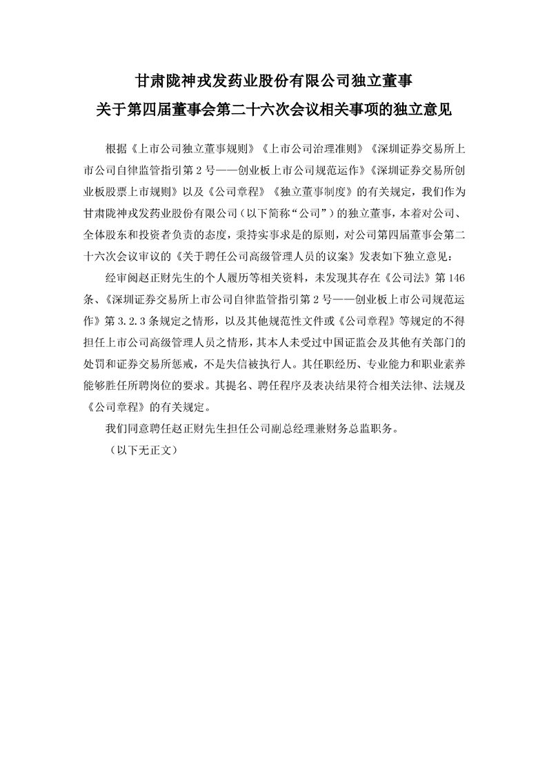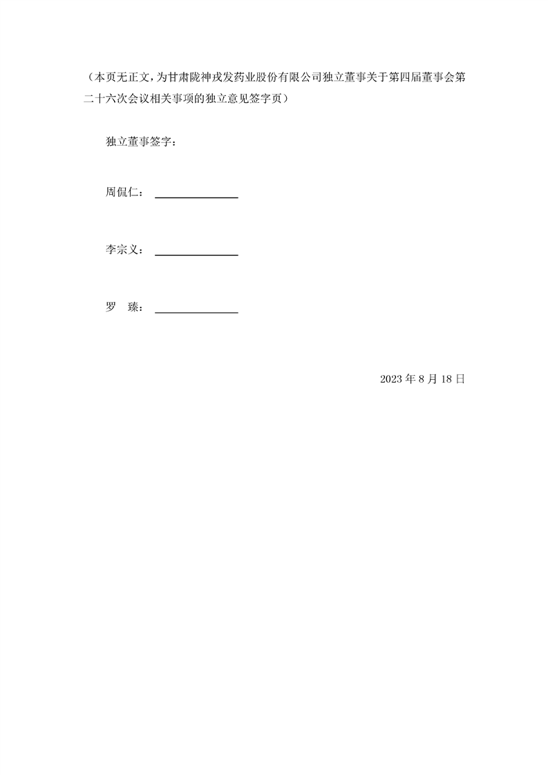 獨立董事關于第四屆董事會第二十六次會議相關事項的獨立意見