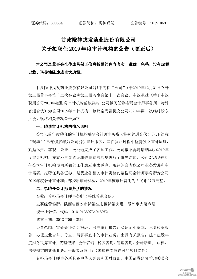 關于擬聘任2019年度審計機構的公告(更新后)