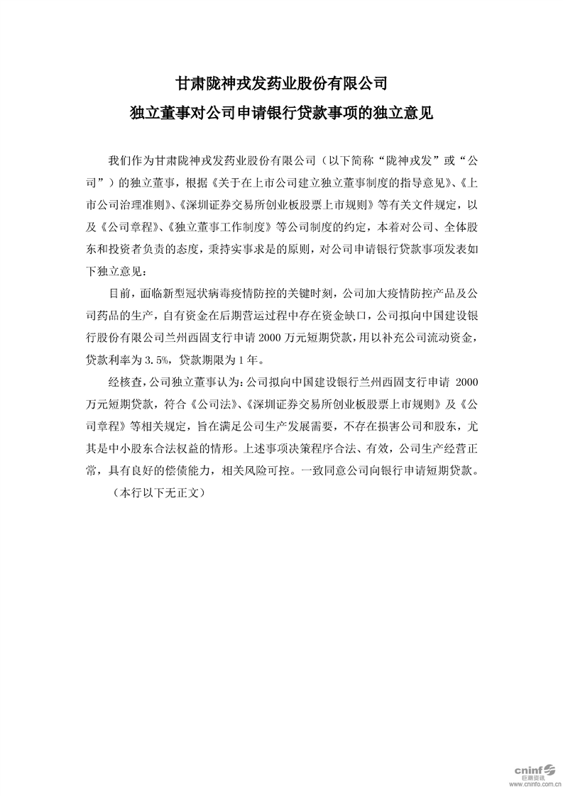獨立董事對公司申請銀行貸款事項的獨立意見