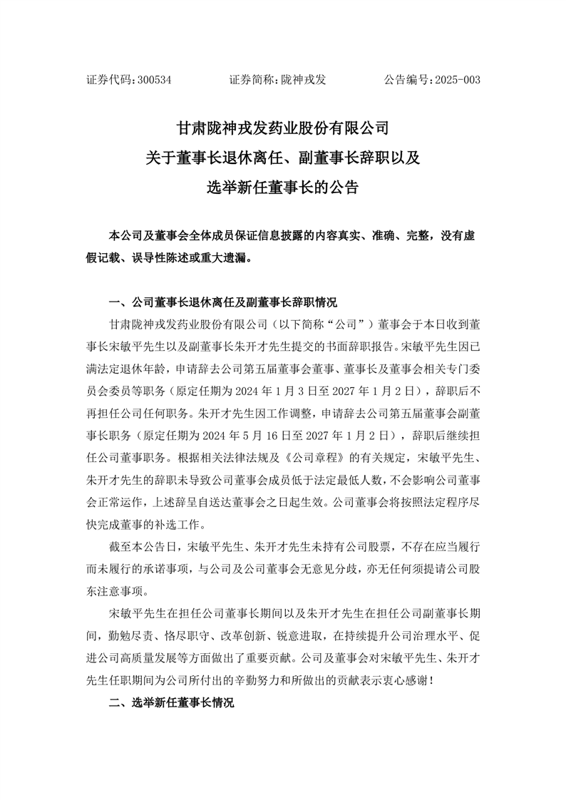 關(guān)于董事長退休離任、副董事長辭職以及選舉新任董事長的公告