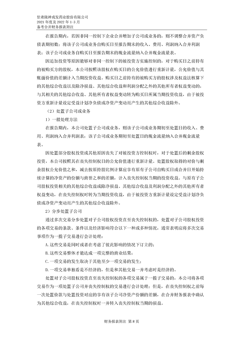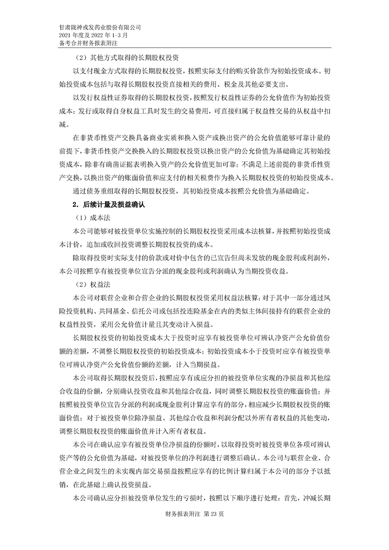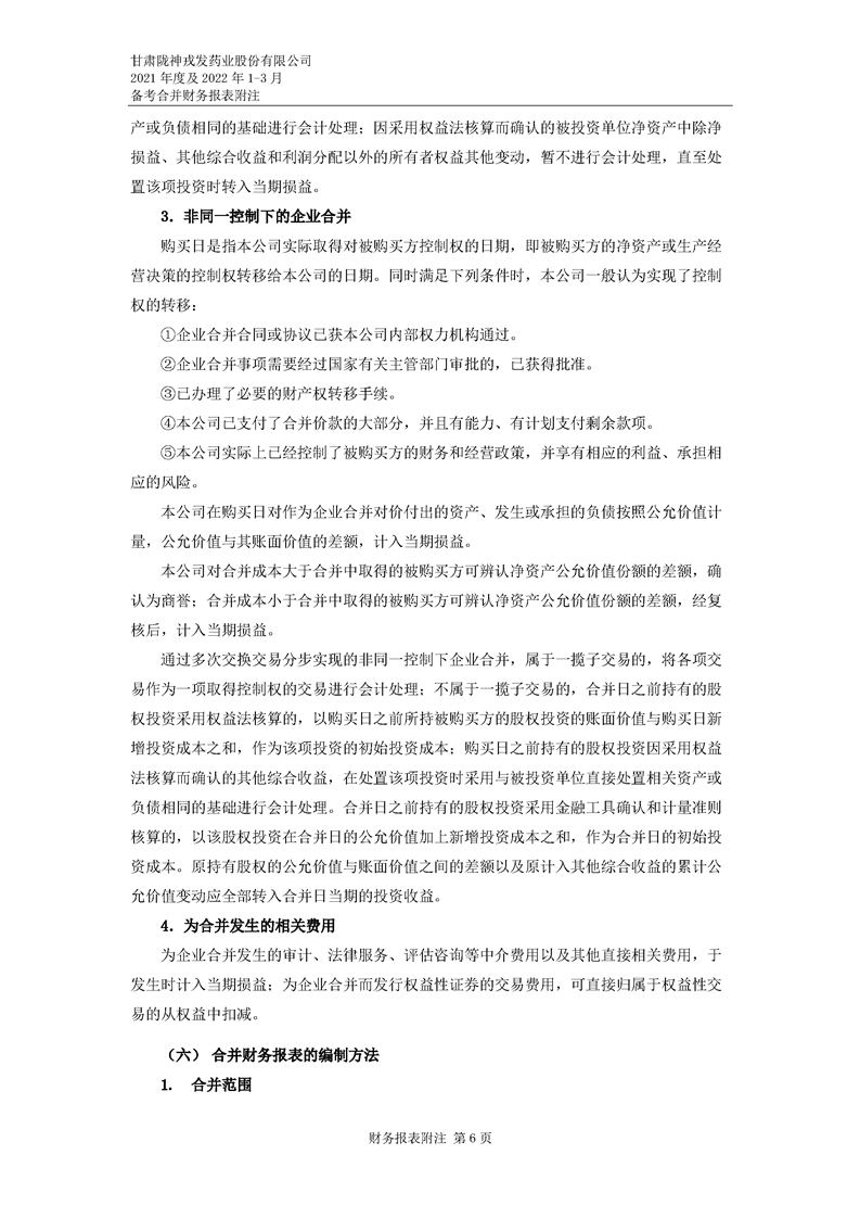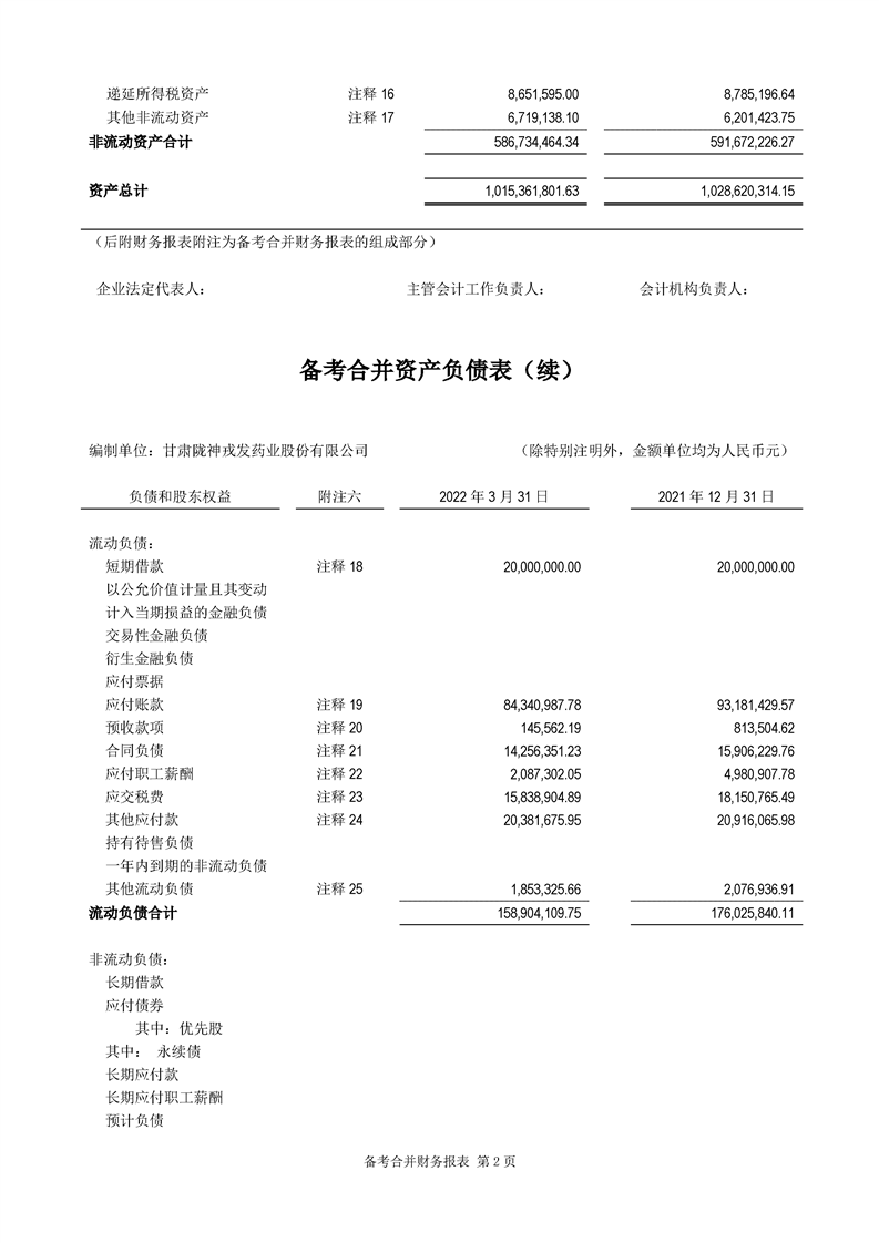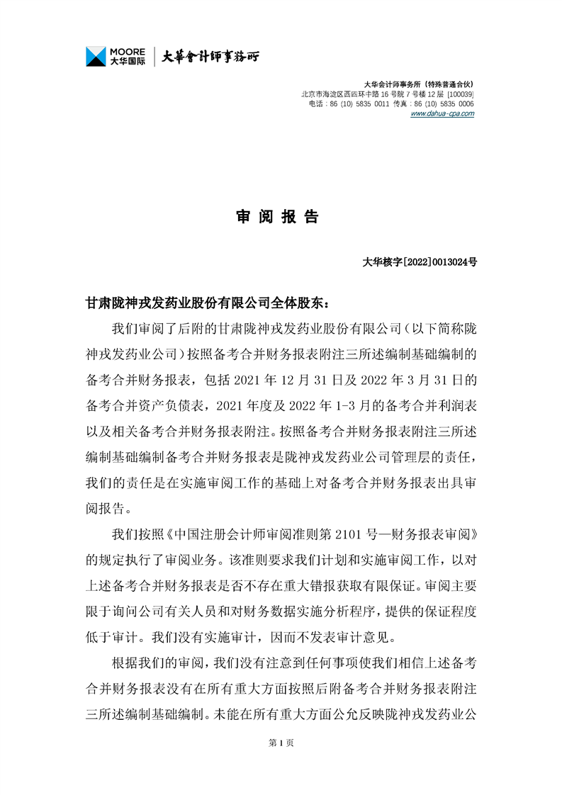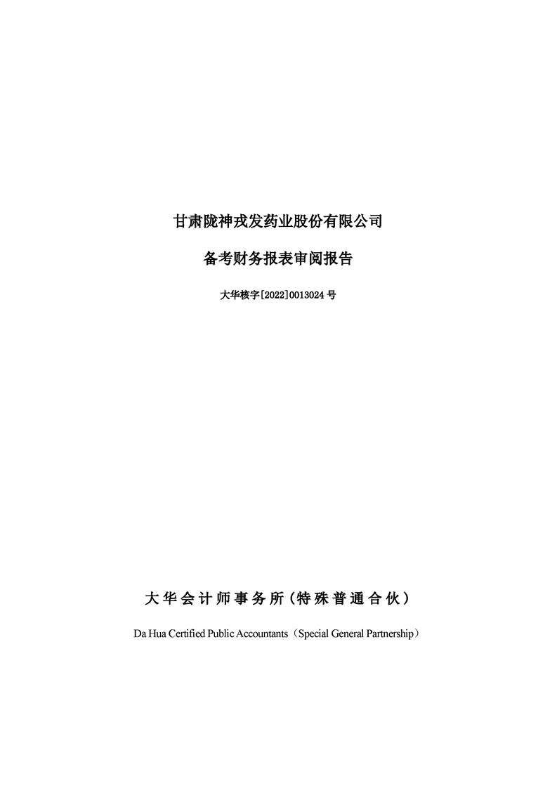 甘肅隴神戎發藥業股份有限公司備考財務報表審閱報告