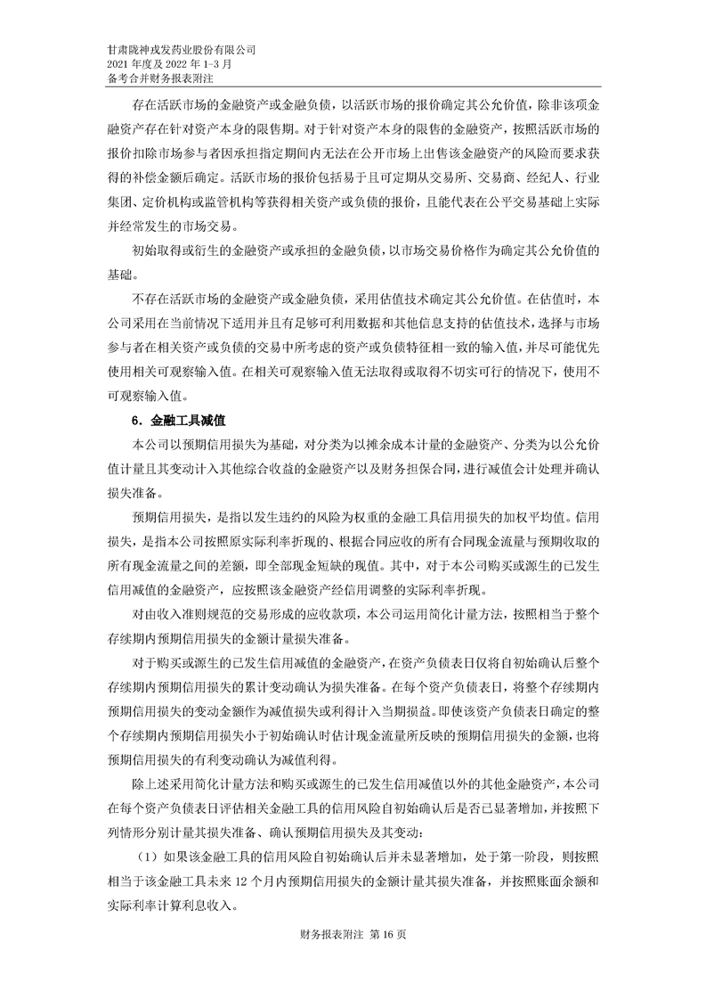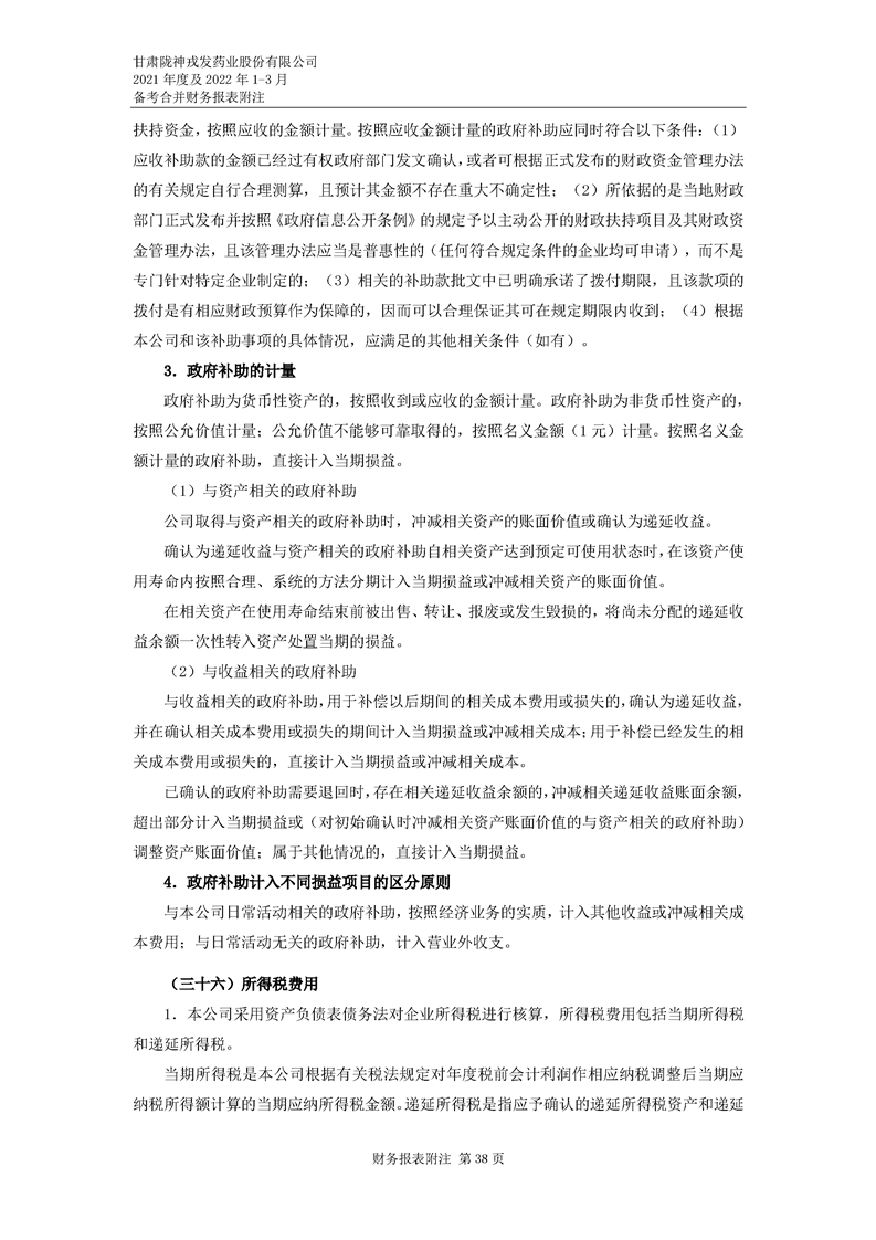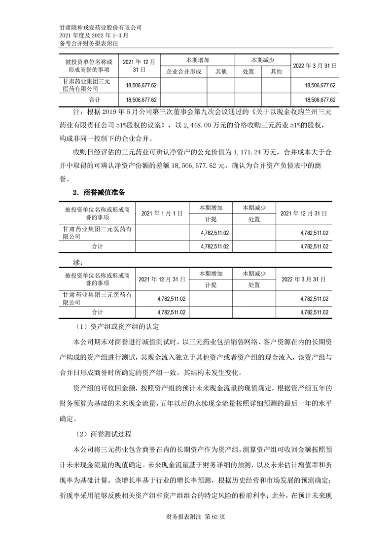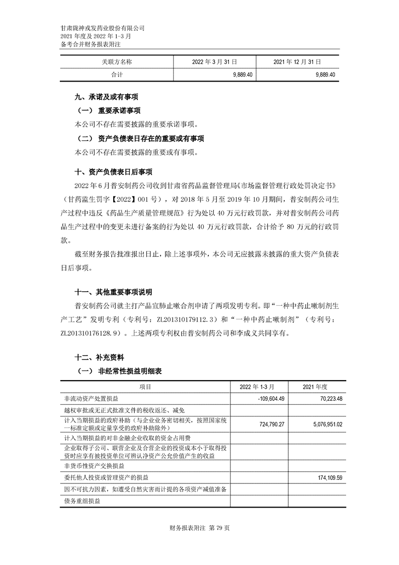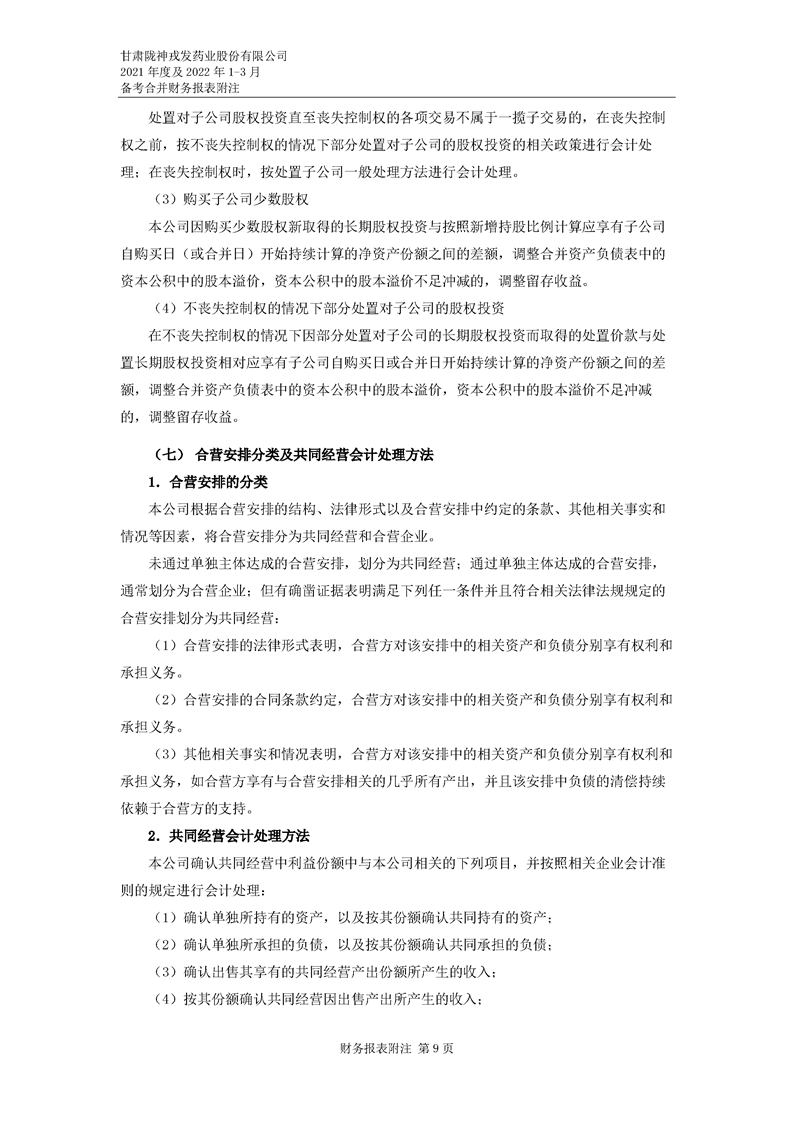 甘肅隴神戎發藥業股份有限公司備考財務報表審閱報告