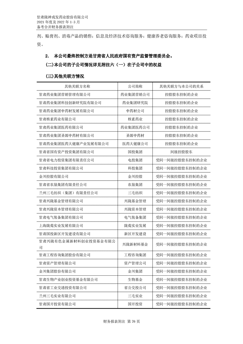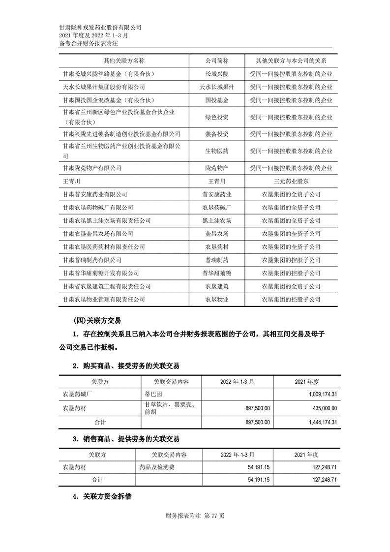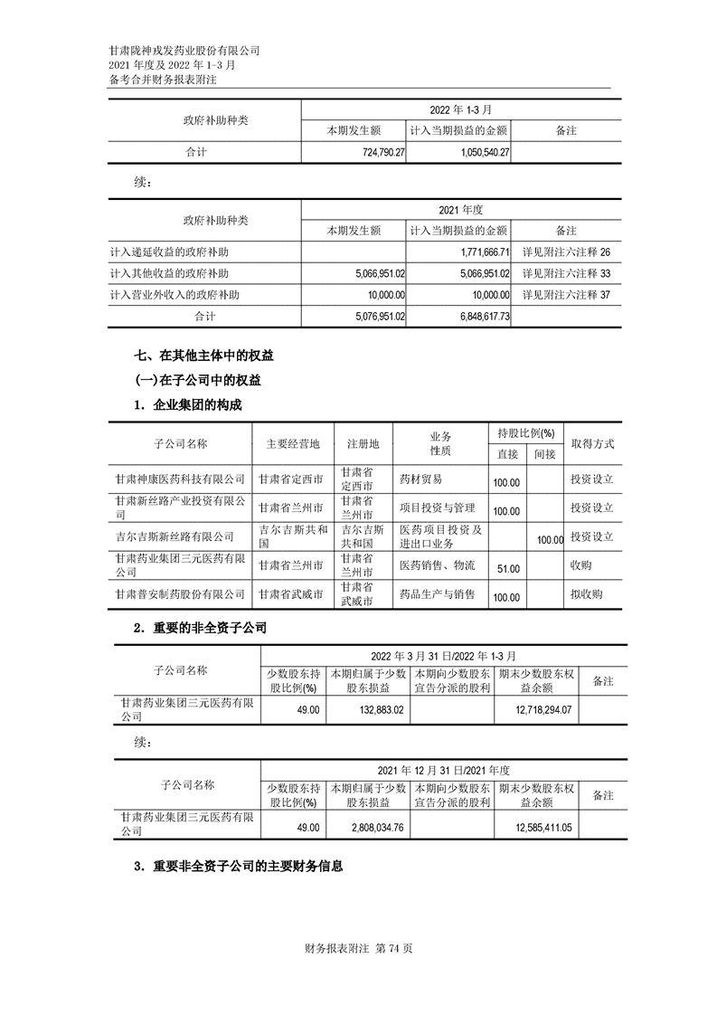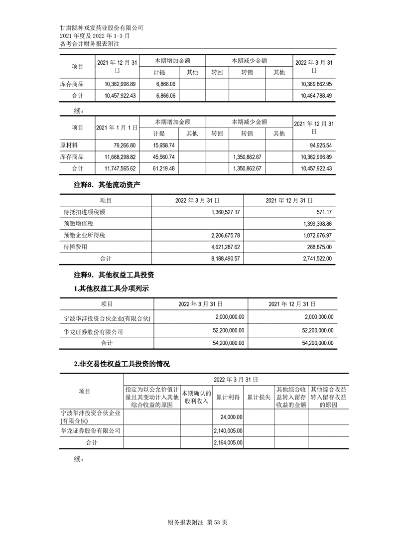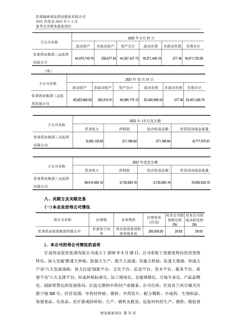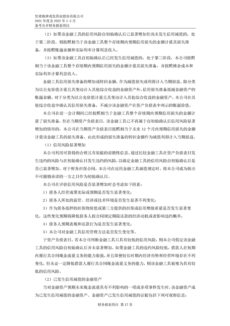 甘肅隴神戎發藥業股份有限公司備考財務報表審閱報告
