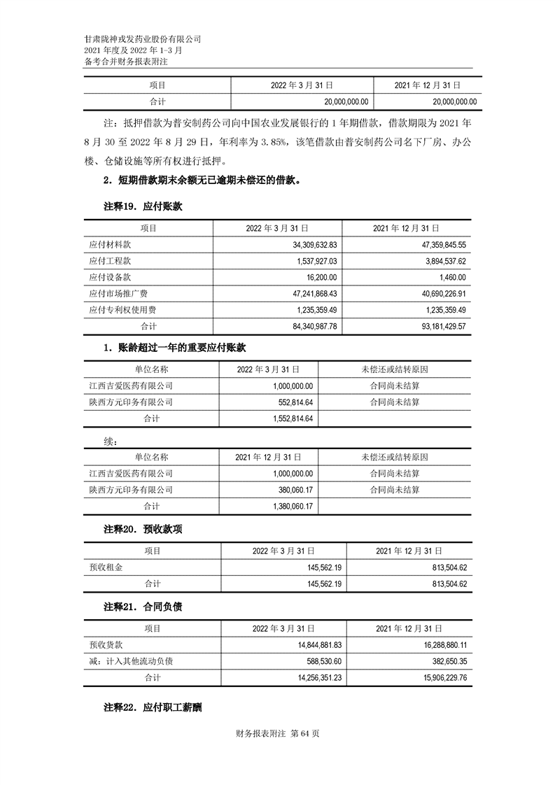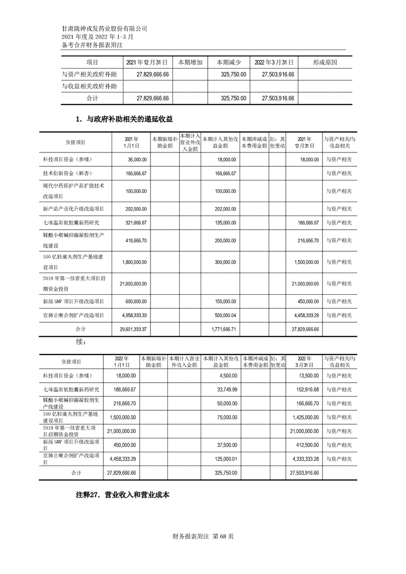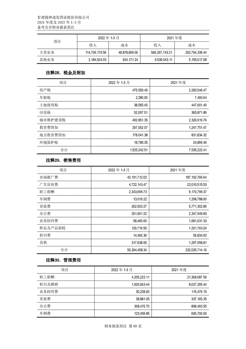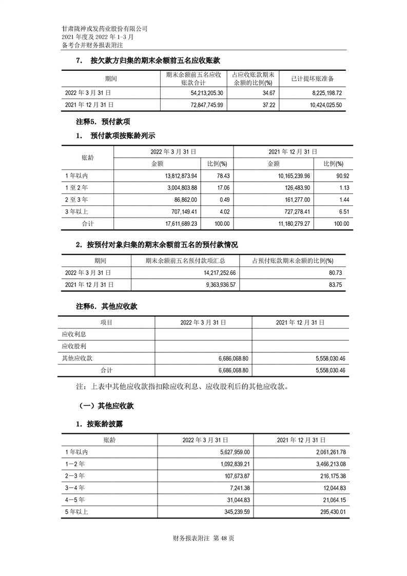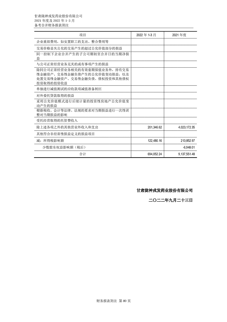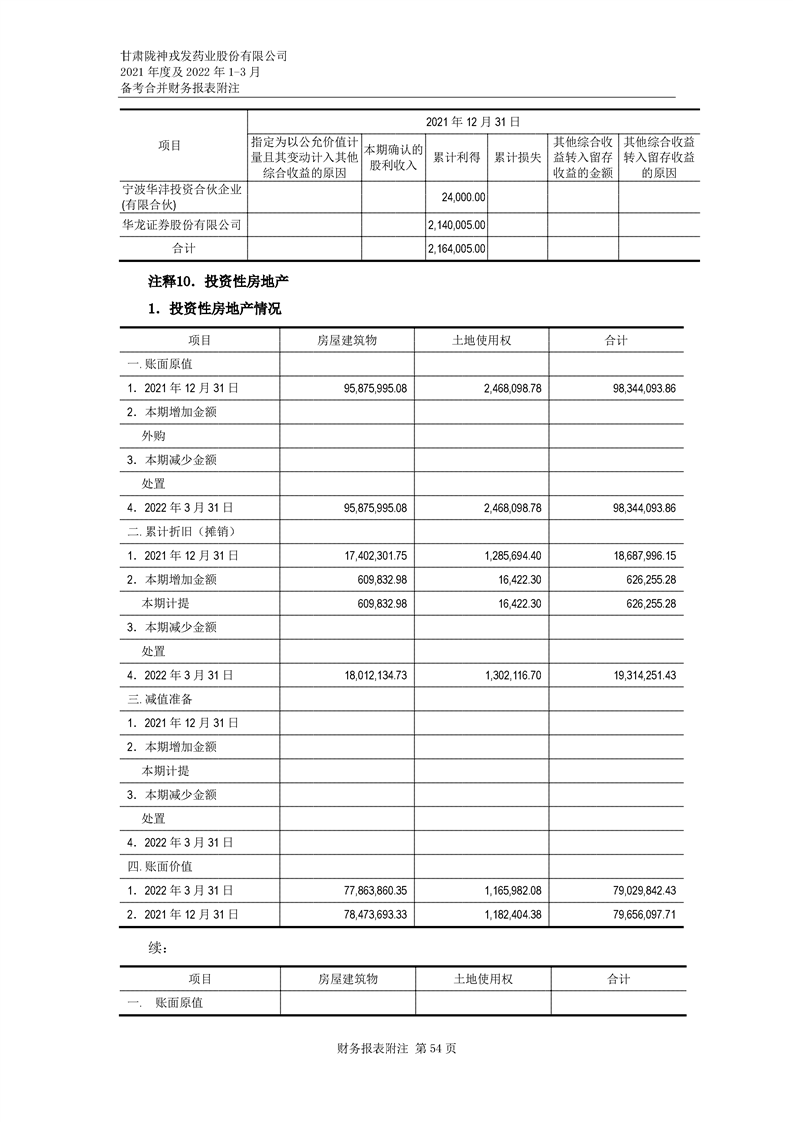 甘肅隴神戎發藥業股份有限公司備考財務報表審閱報告