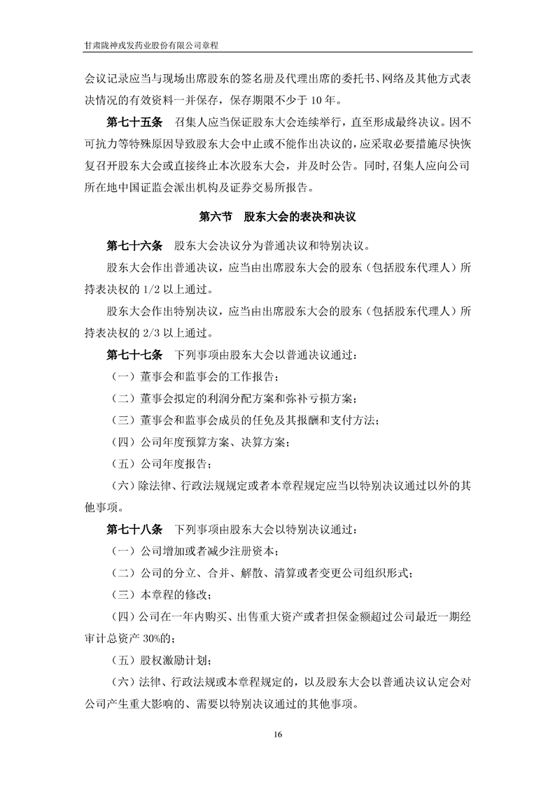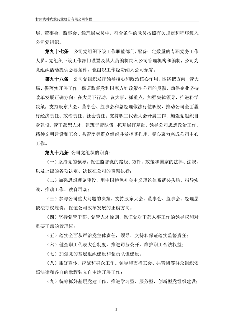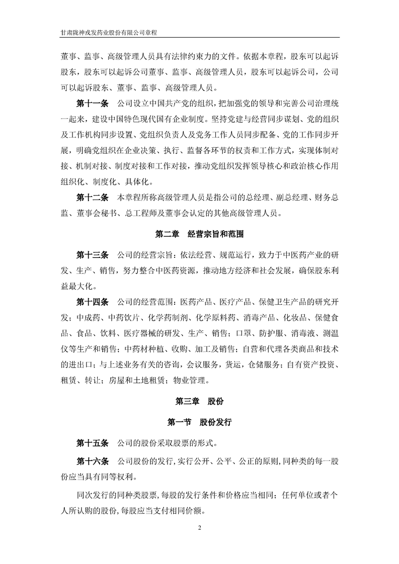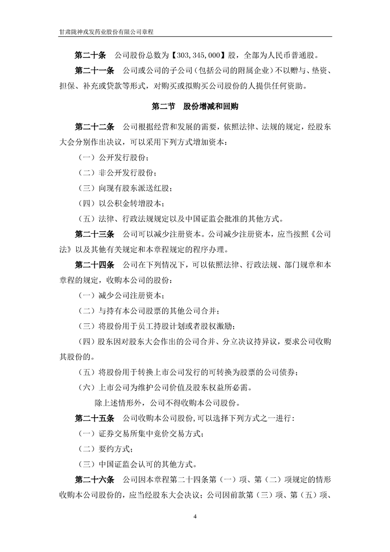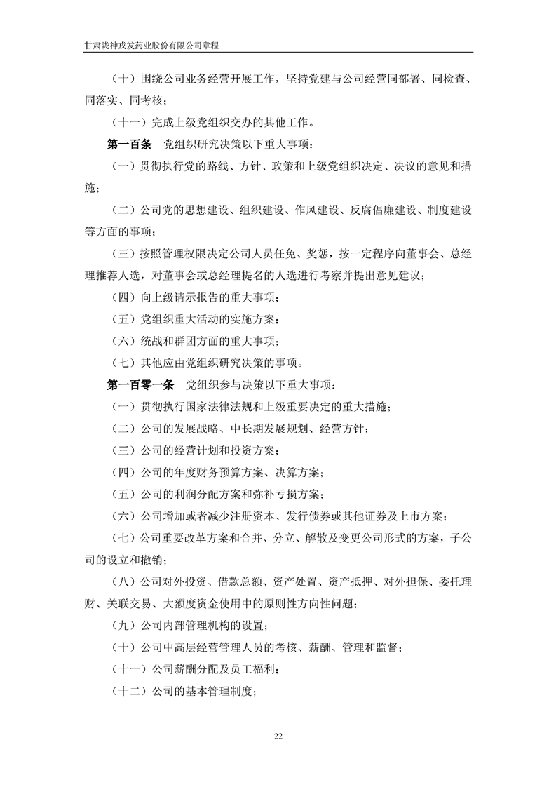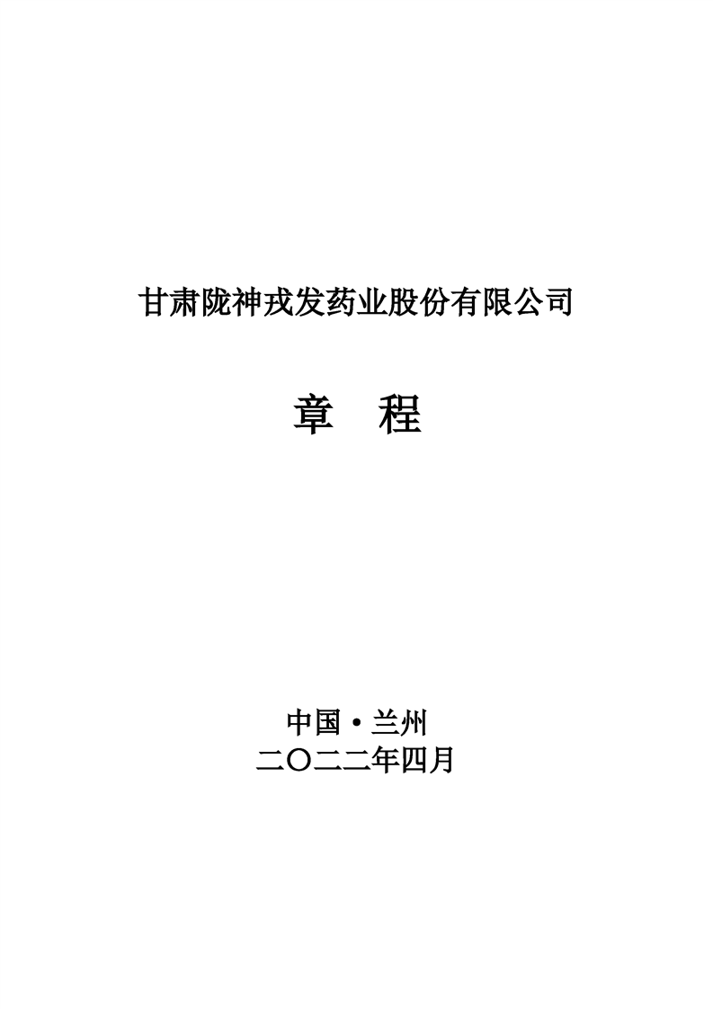 甘肅隴神戎發藥業股份有限公司章程(2022年4月)