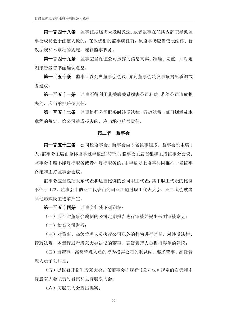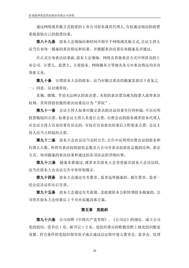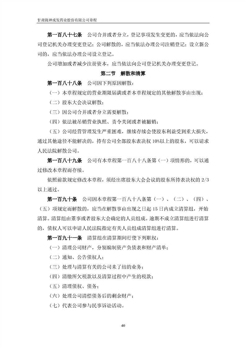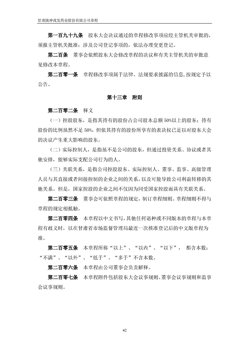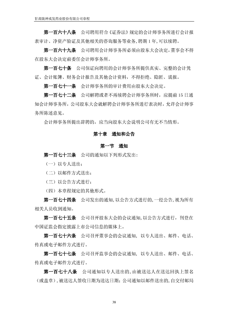 甘肅隴神戎發藥業股份有限公司章程(2022年4月)
