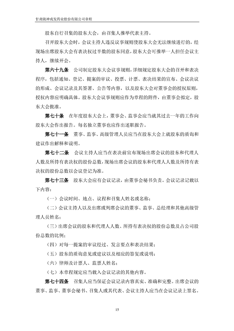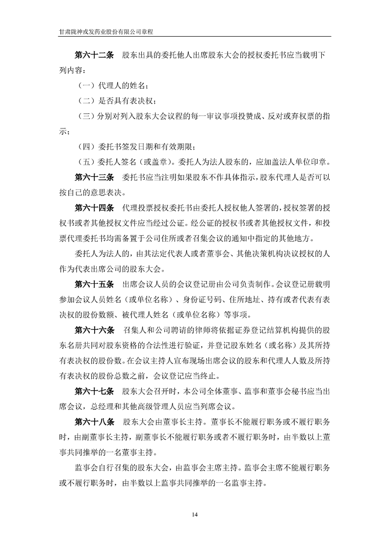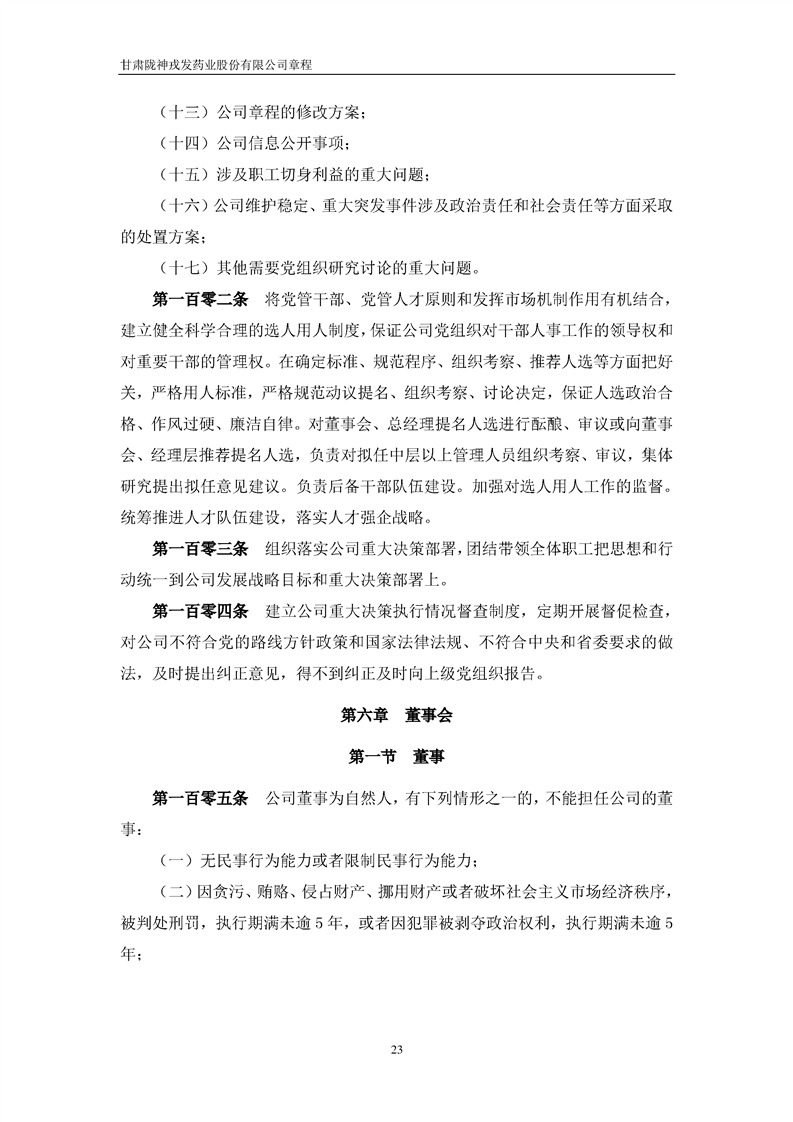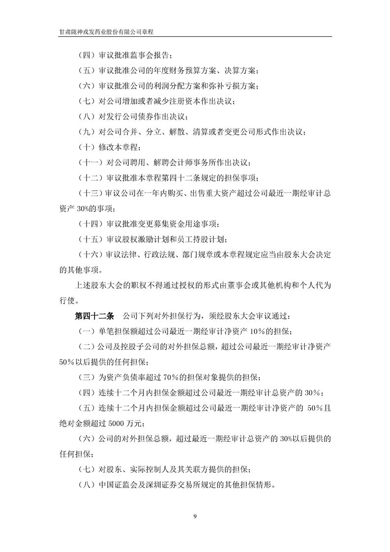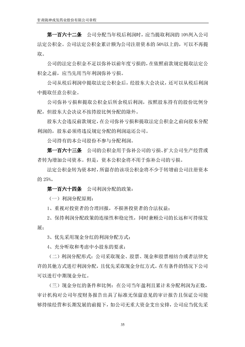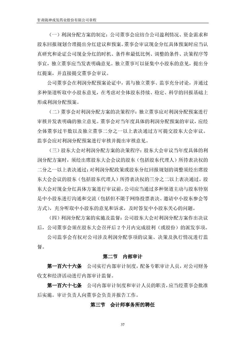 甘肅隴神戎發藥業股份有限公司章程(2022年4月)