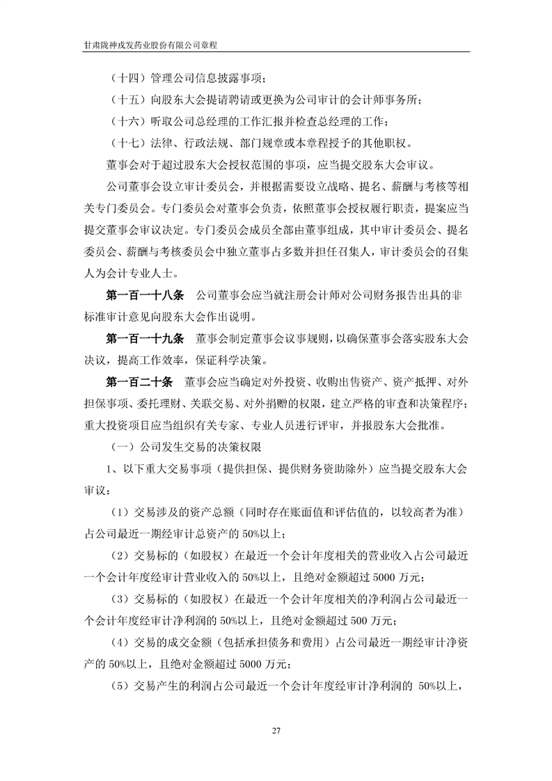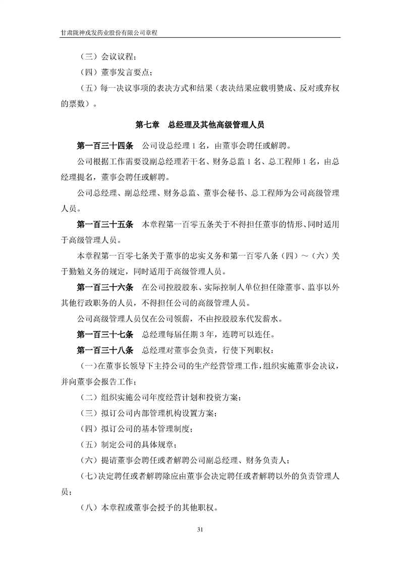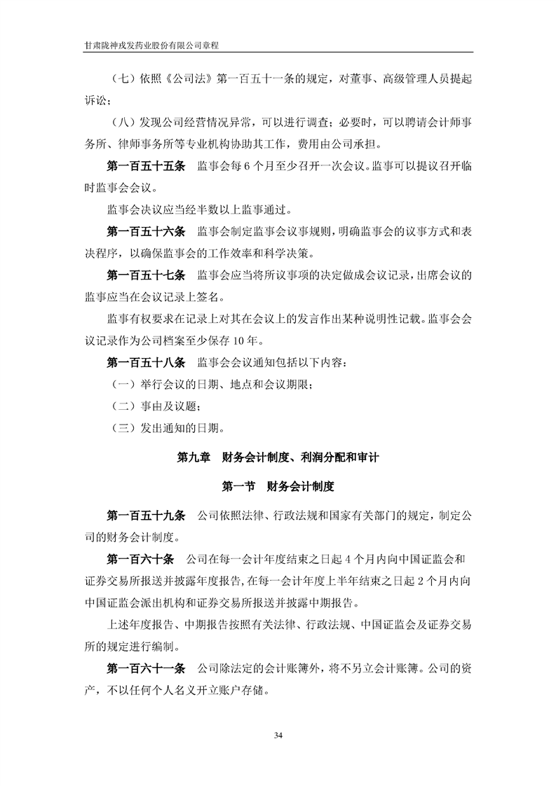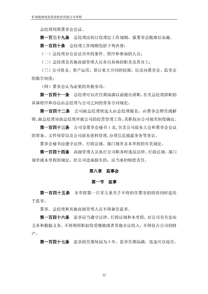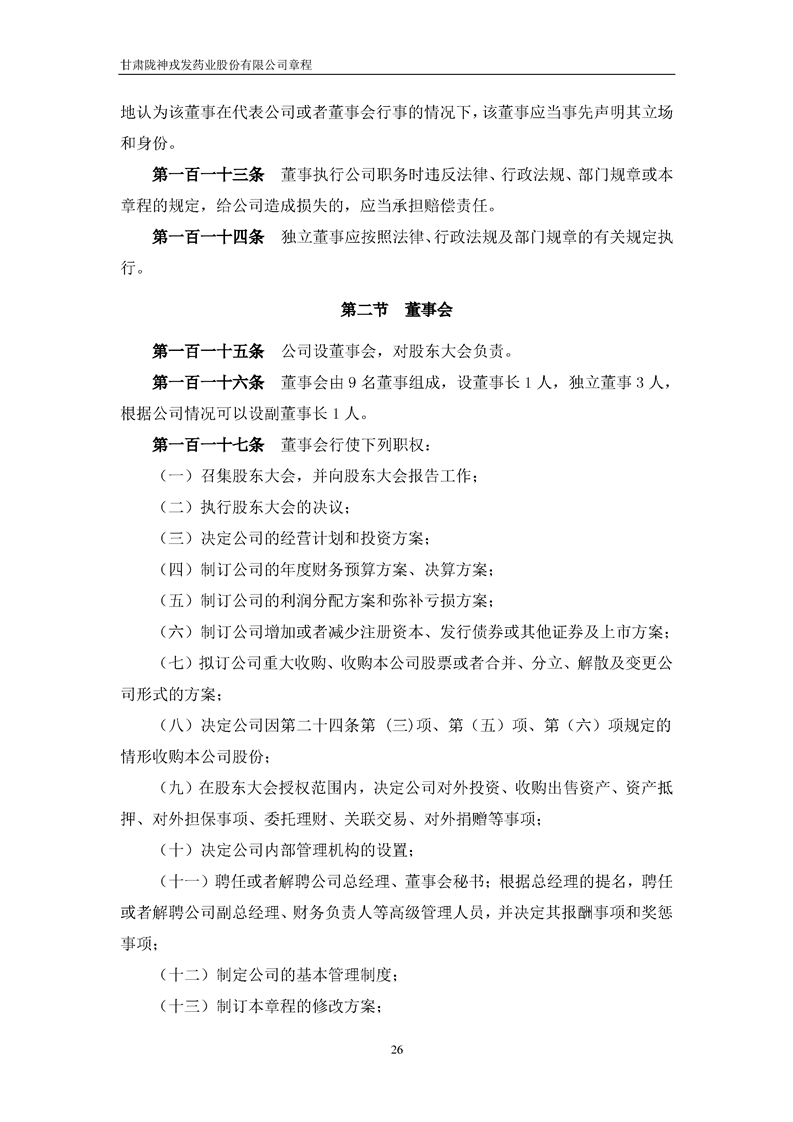 甘肅隴神戎發藥業股份有限公司章程(2022年4月)