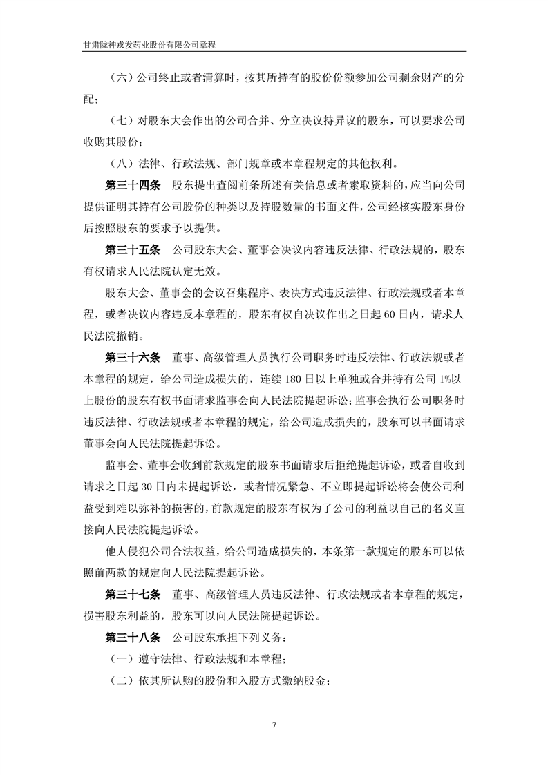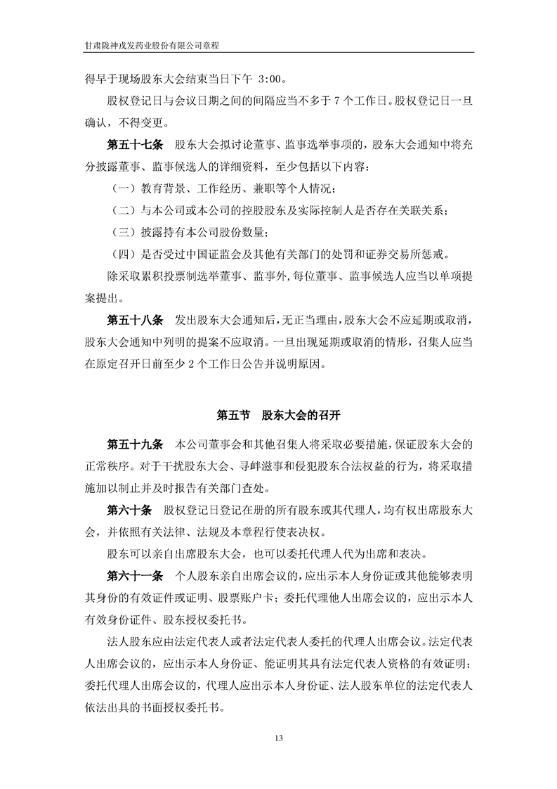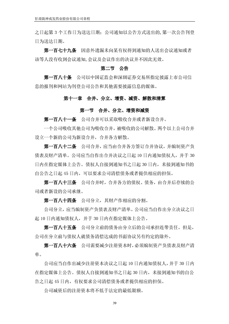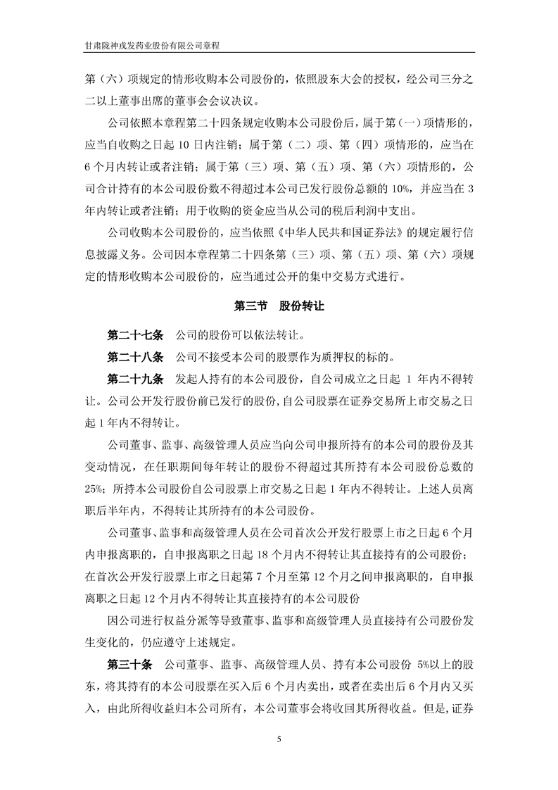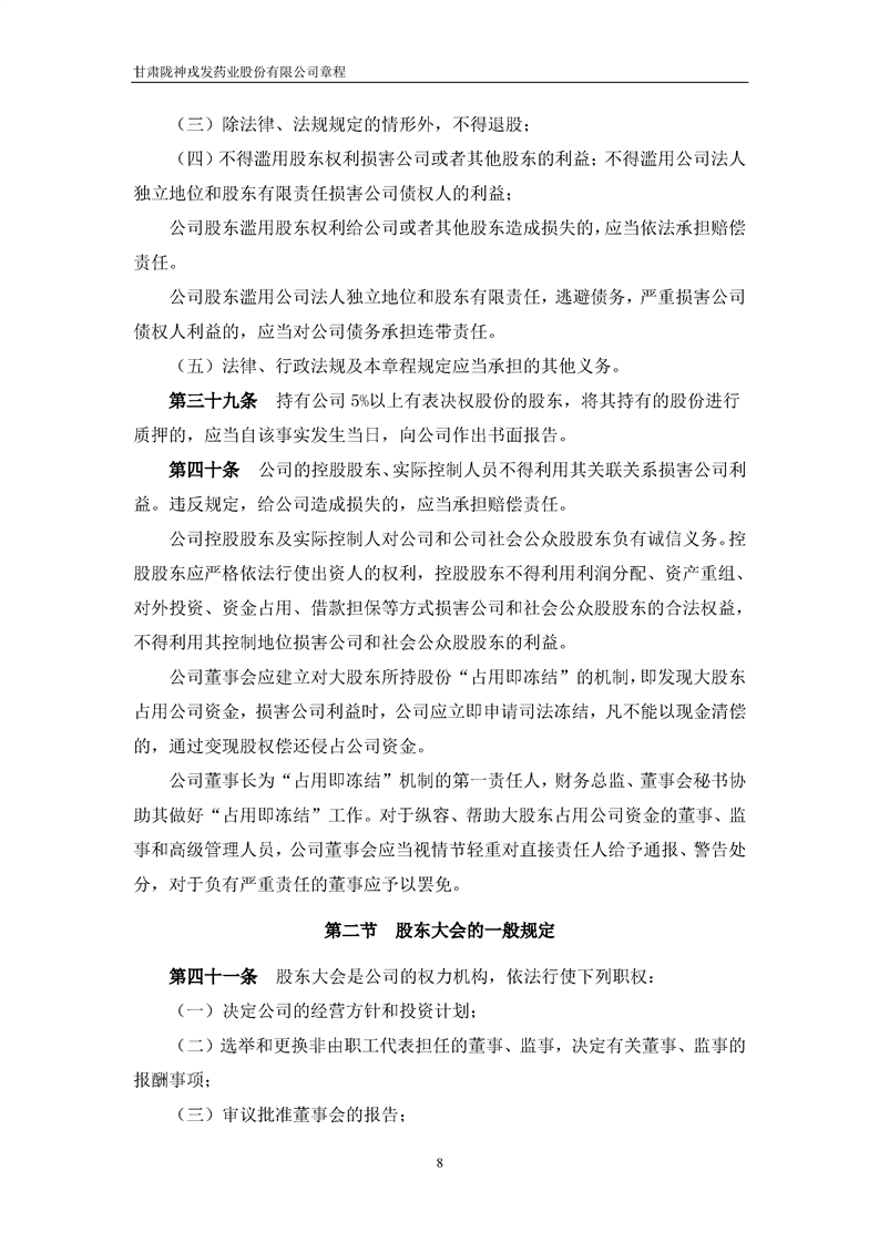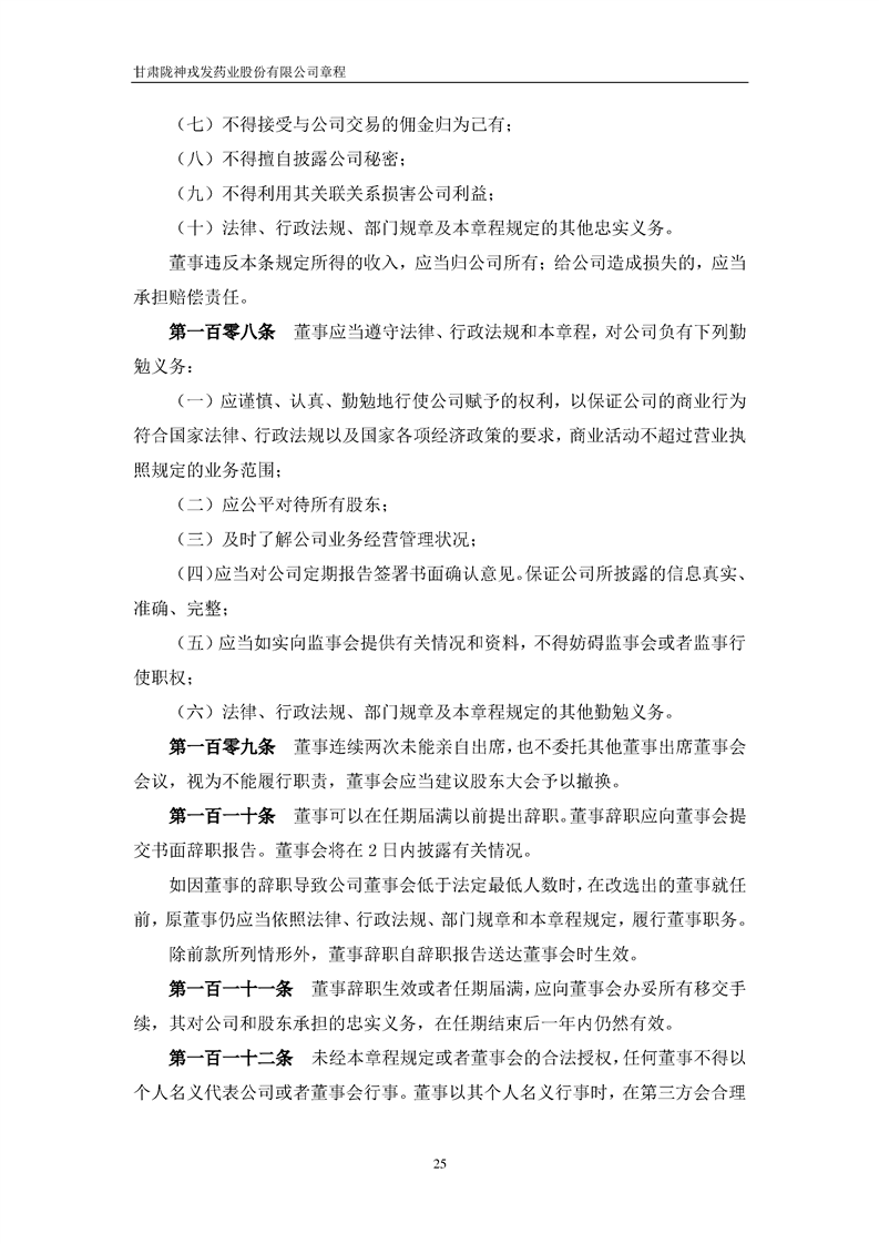 甘肅隴神戎發藥業股份有限公司章程(2022年4月)