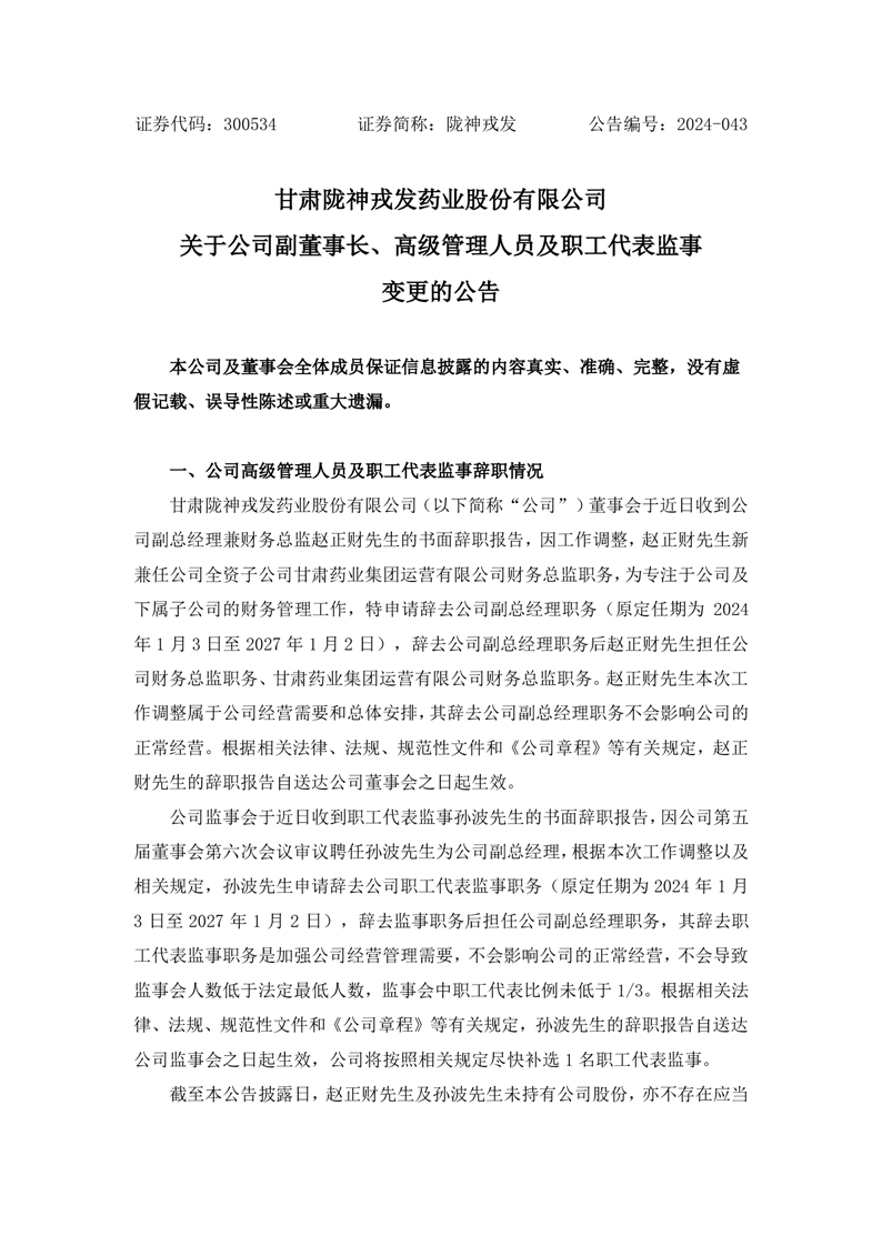 關于公司副董事長、高級管理人員及職工代表監事變更的公告