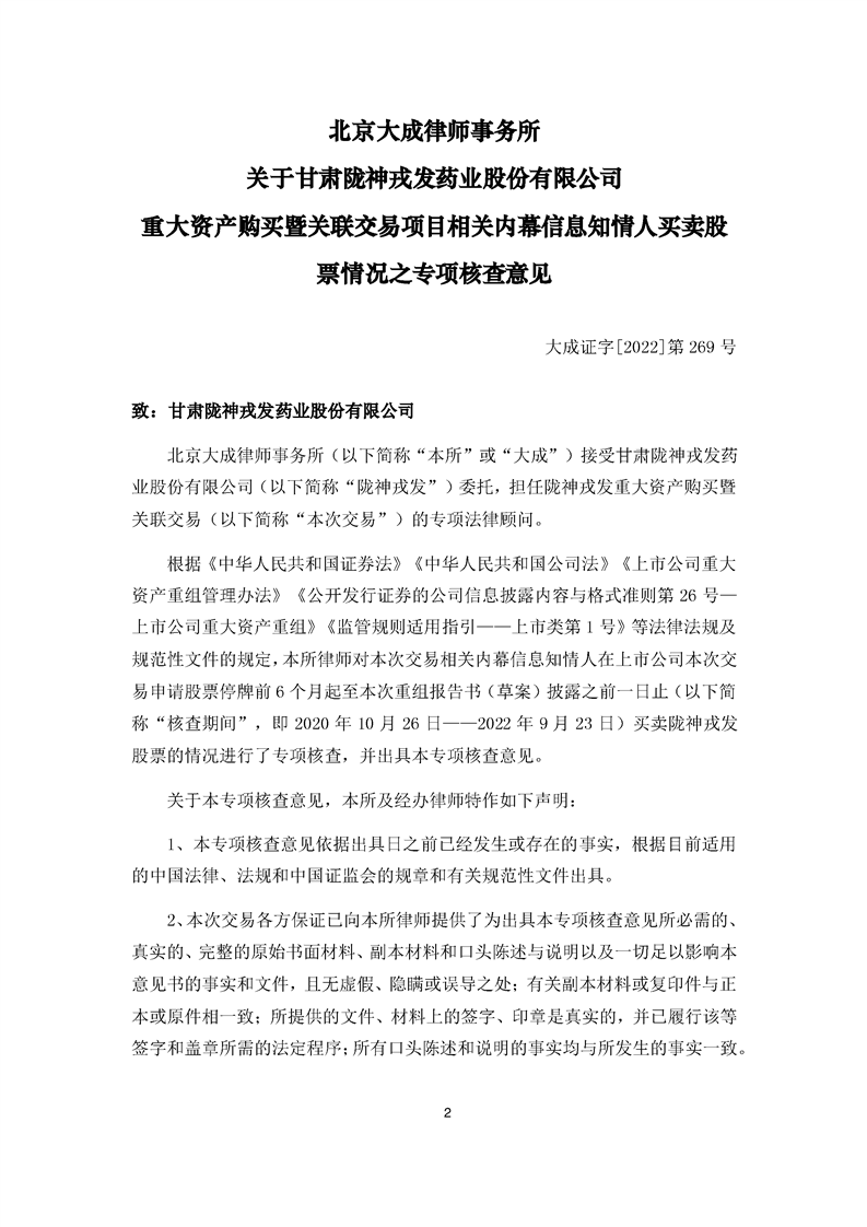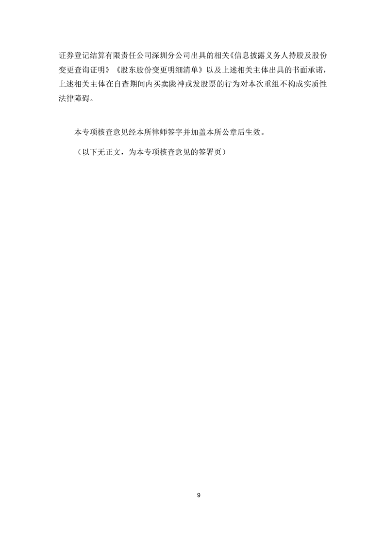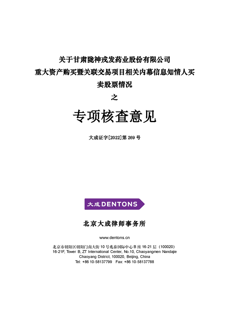北京大成律師事務所關于本次重大資產重組內幕信息知情人買賣股票專項核查意見
