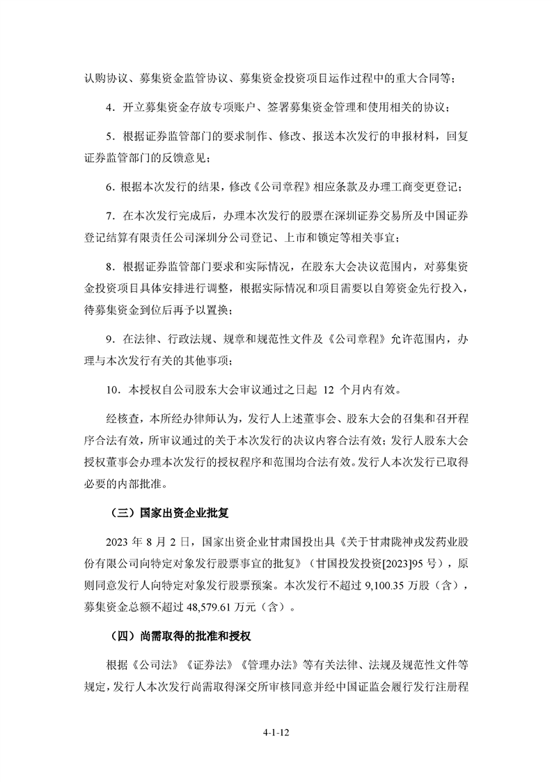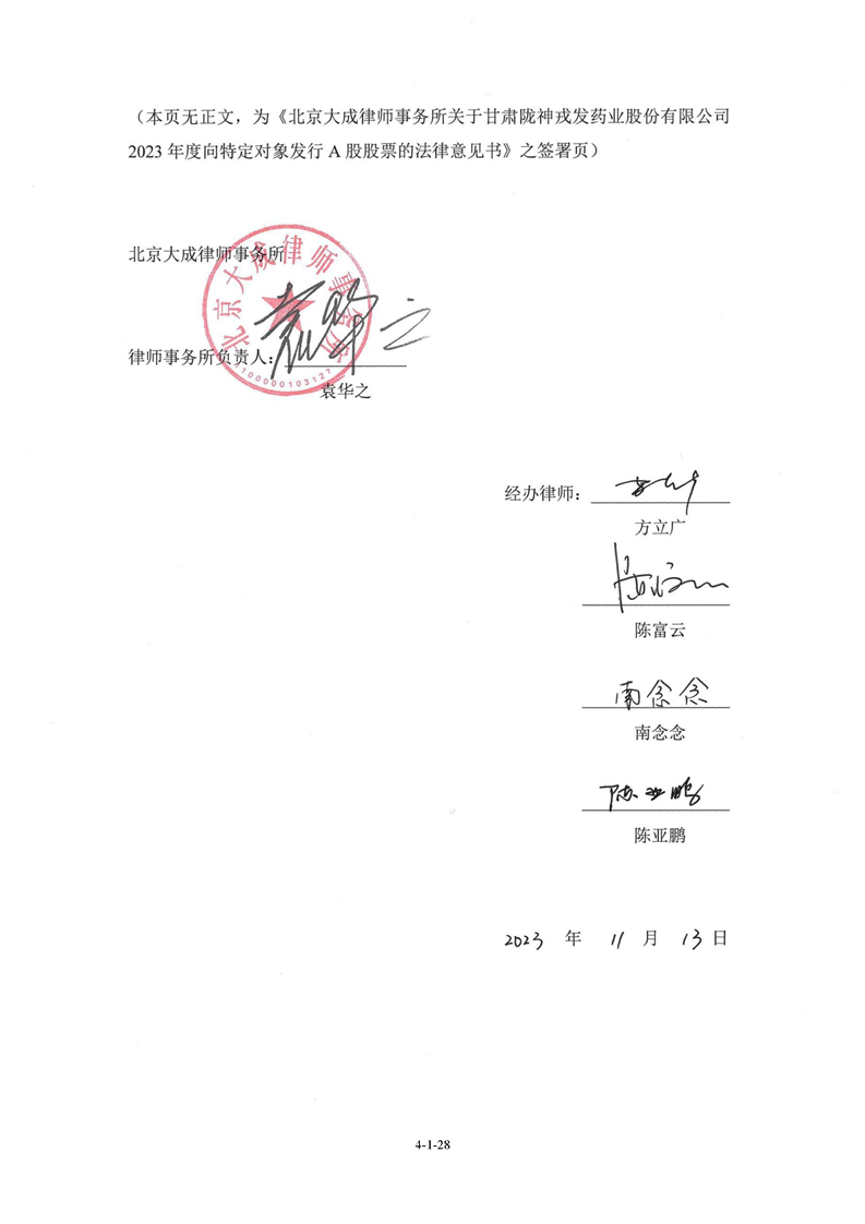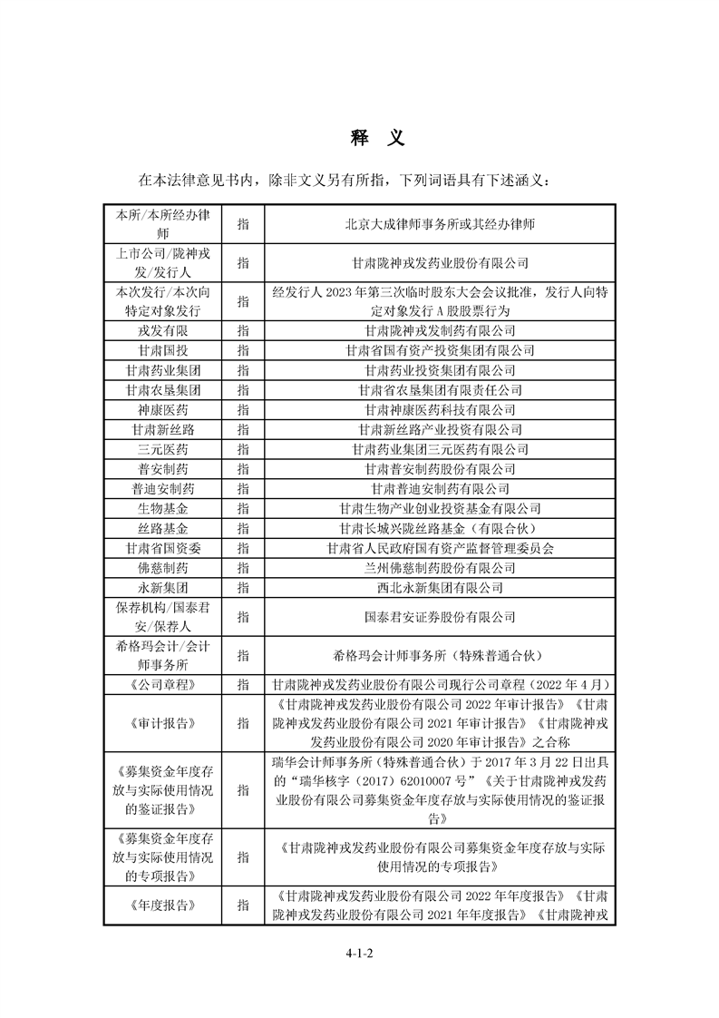 北京大成律師事務(wù)所關(guān)于甘肅隴神戎發(fā)藥業(yè)股份有限公司2023年度向特定對象發(fā)行A股股票的法律意見書