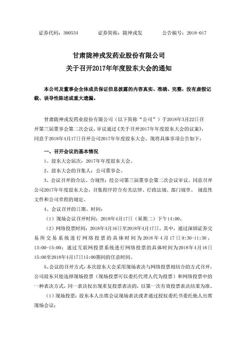 關(guān)于召開(kāi)2017年年度股東大會(huì)的通知