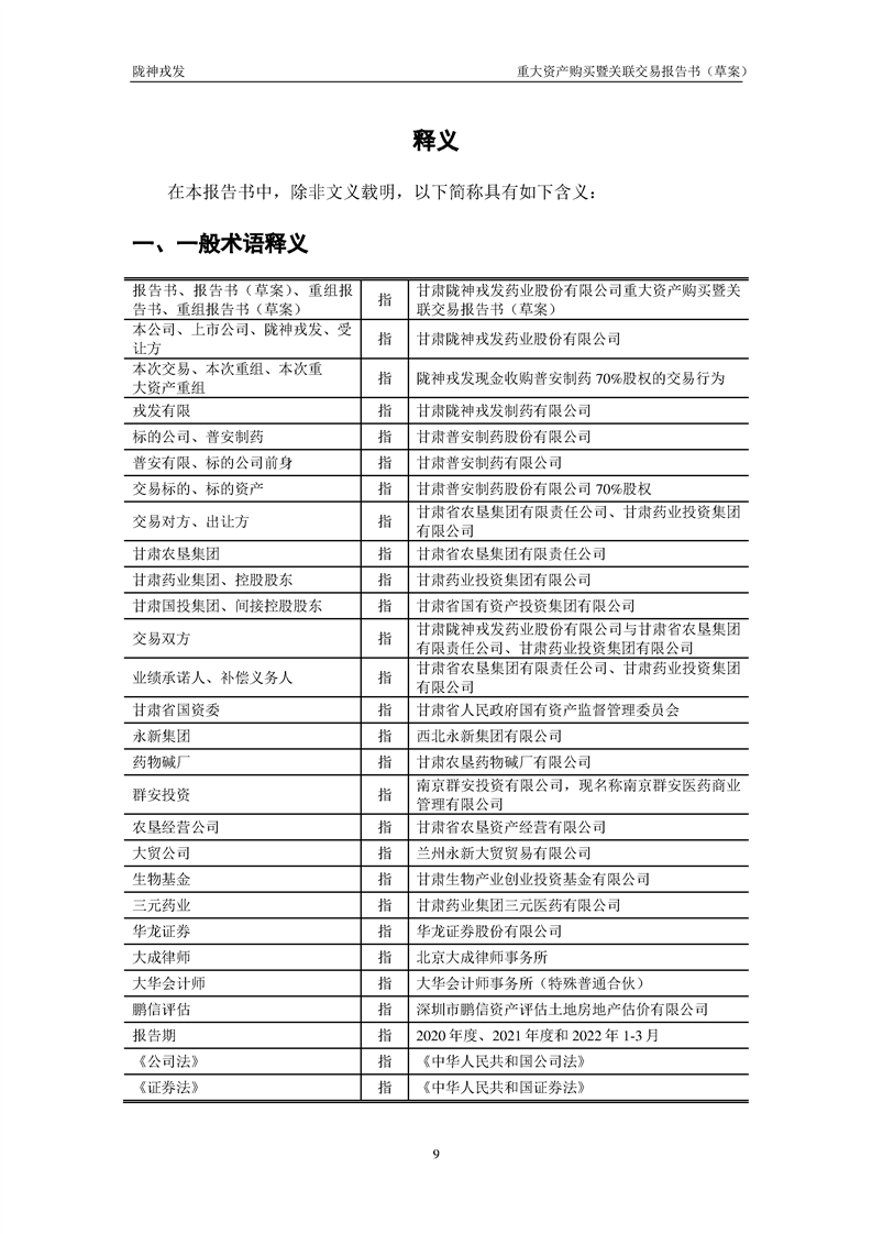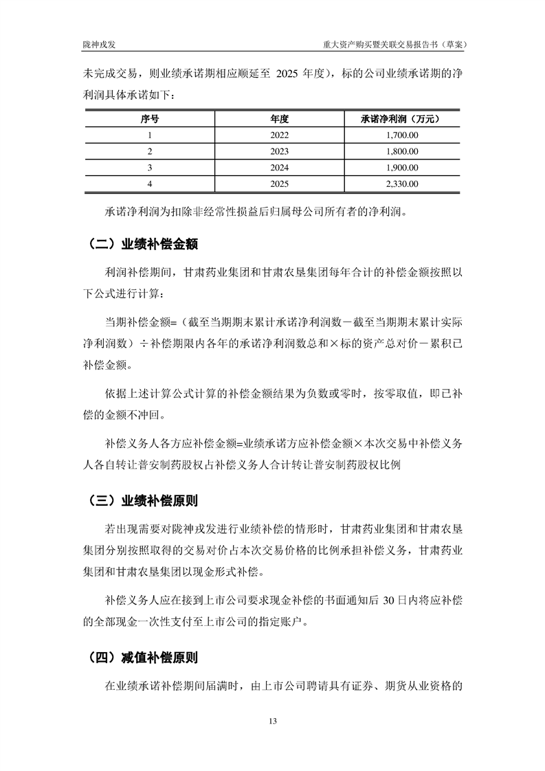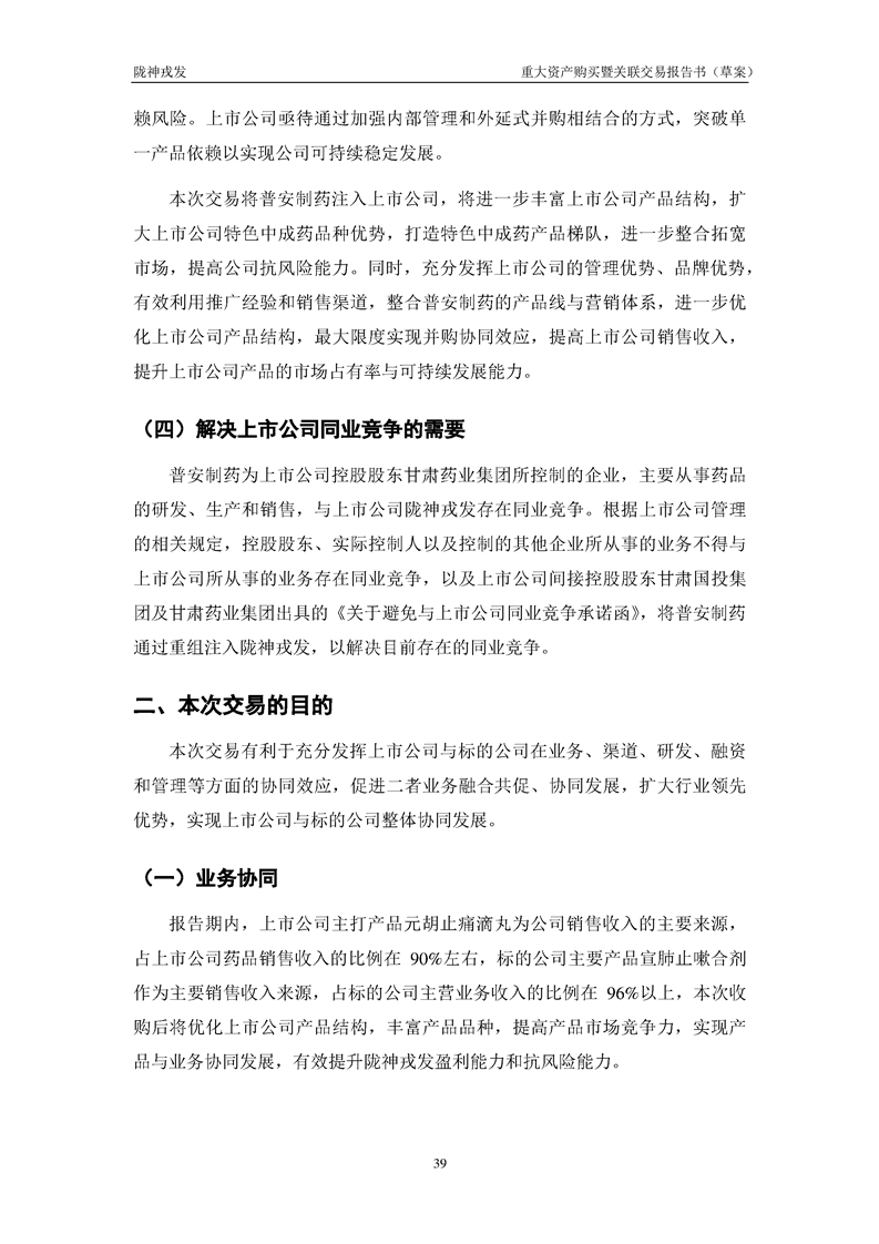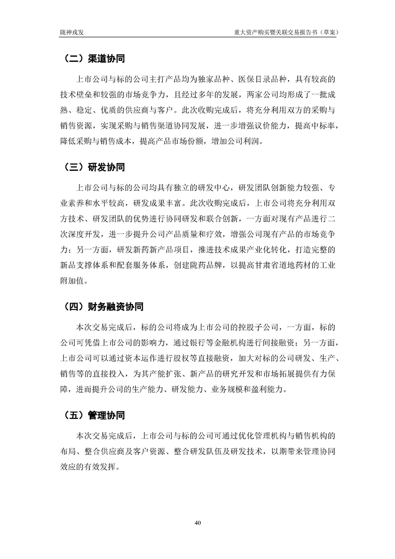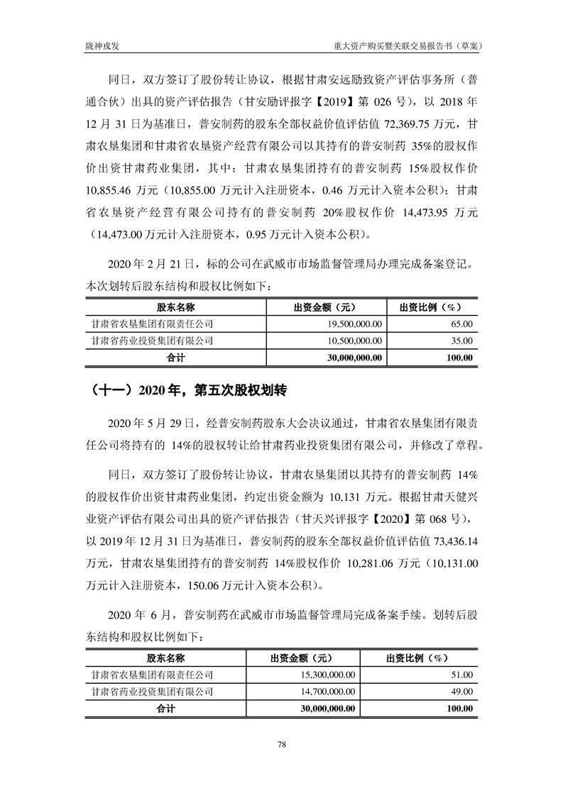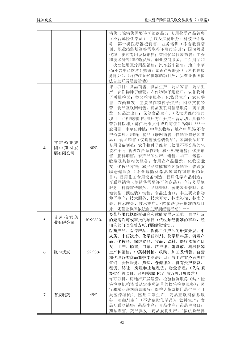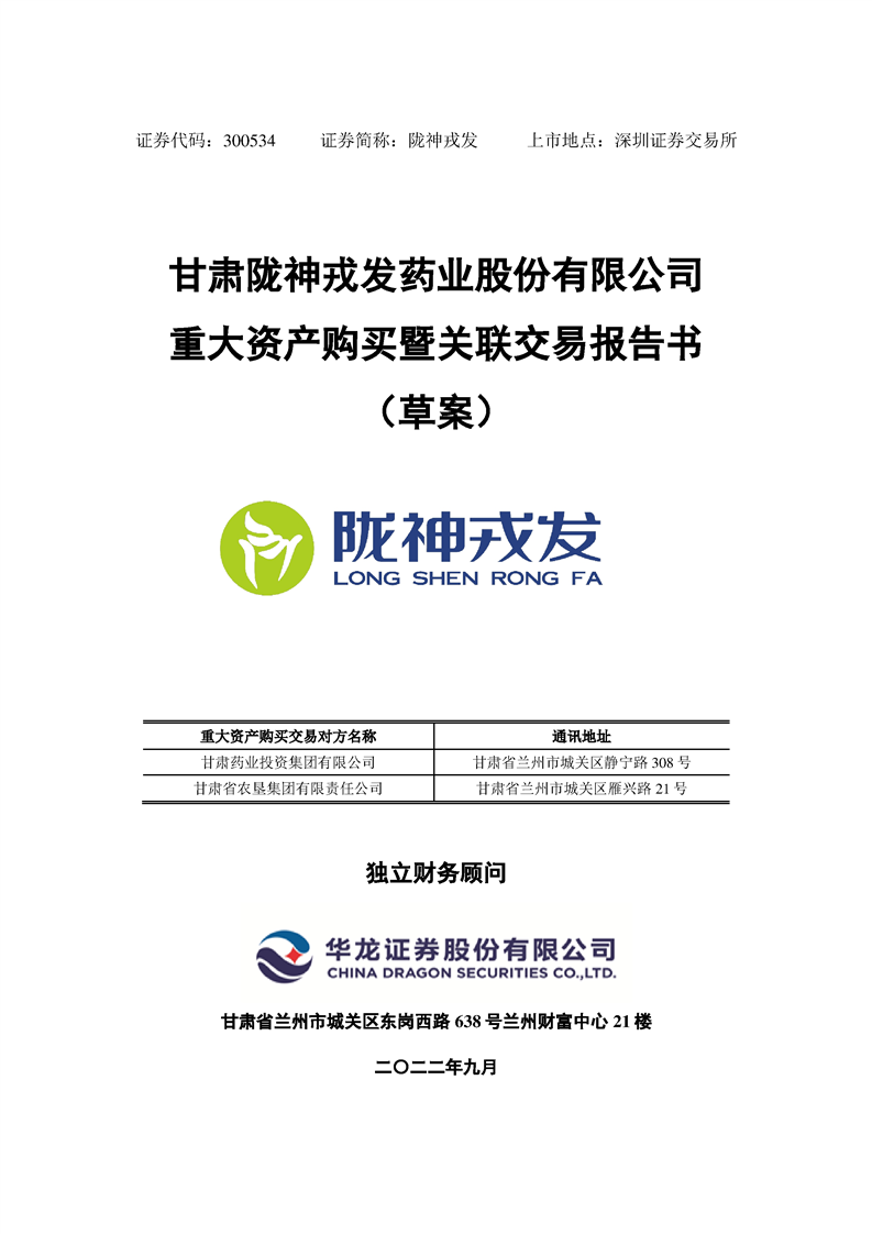 甘肅隴神戎發藥業股份有限公司重大資產購買暨關聯交易報告書(草案)