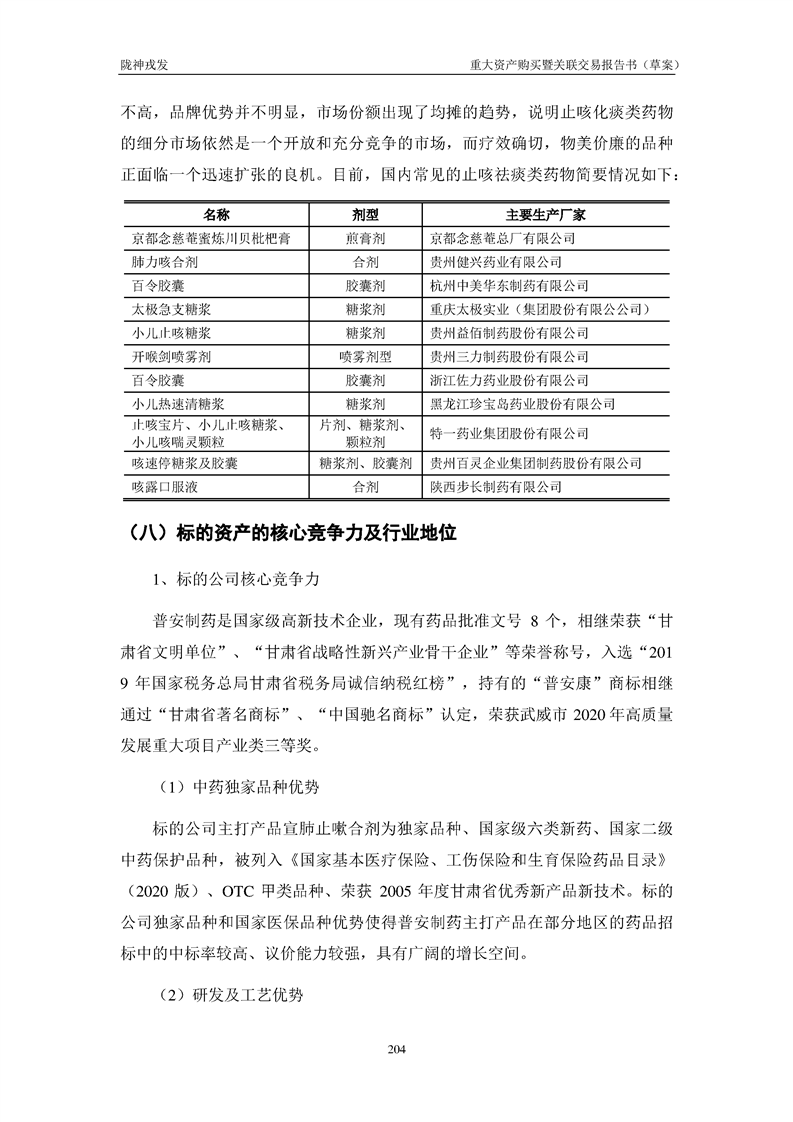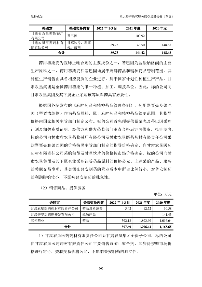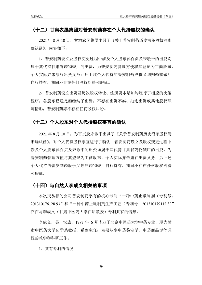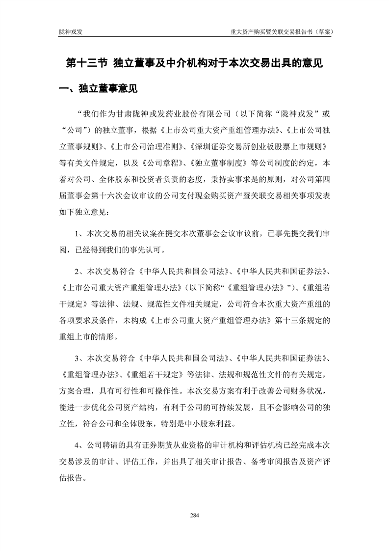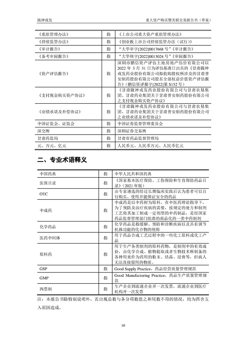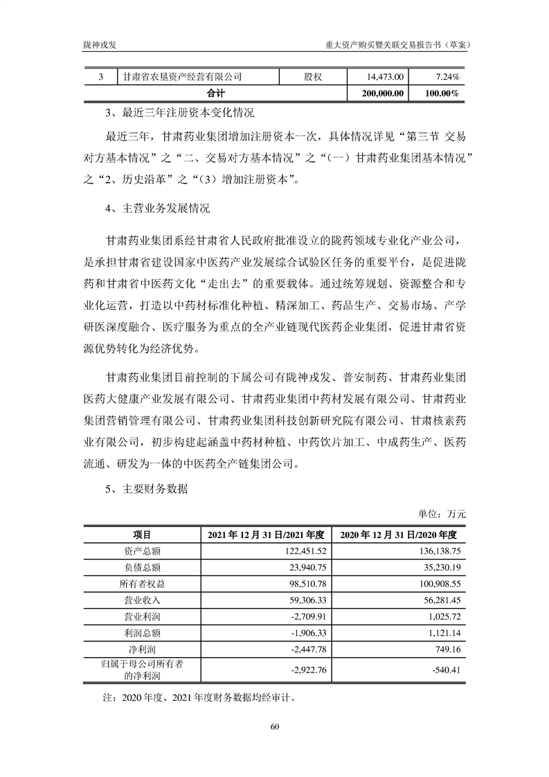 甘肅隴神戎發藥業股份有限公司重大資產購買暨關聯交易報告書(草案)