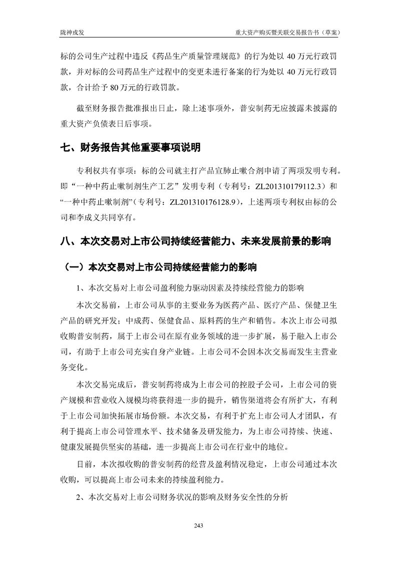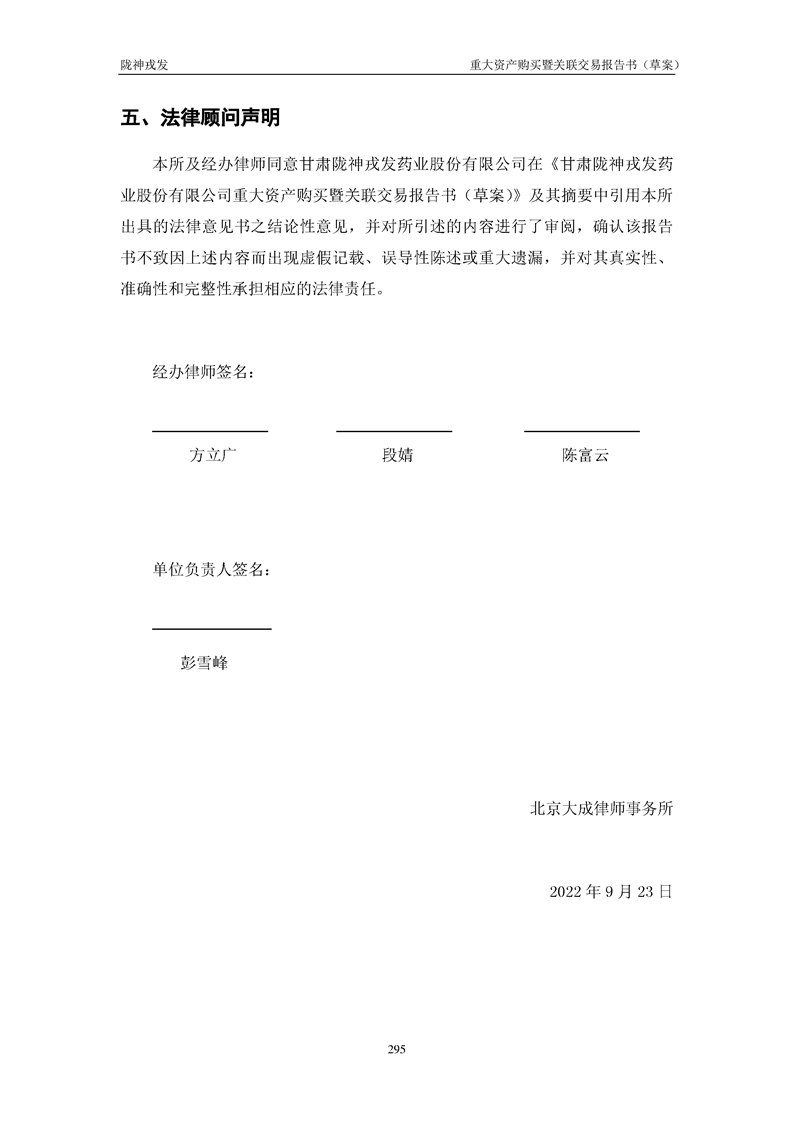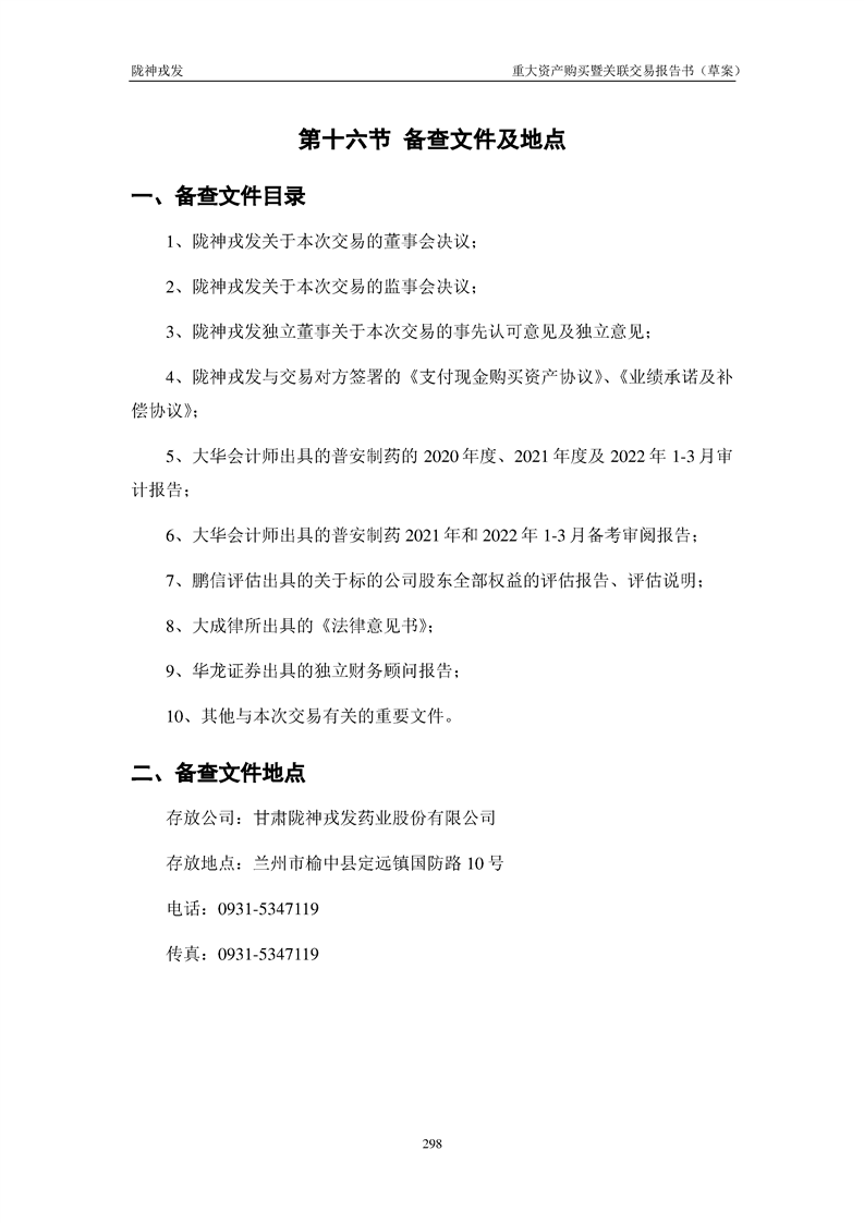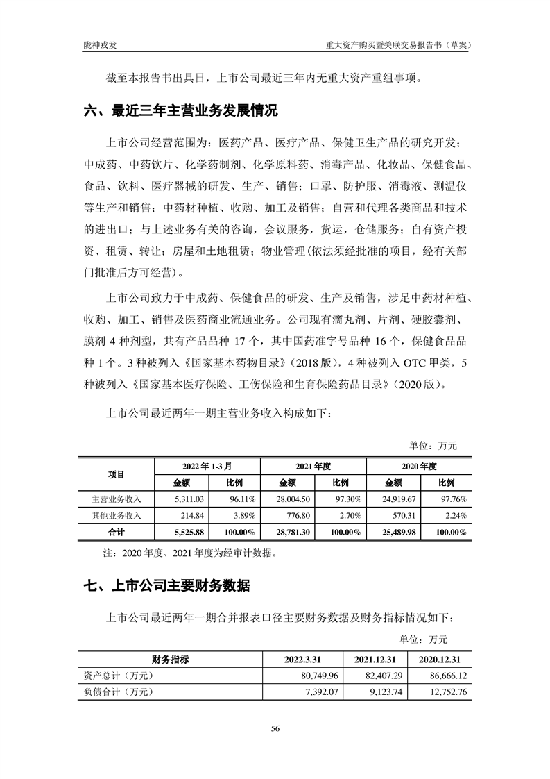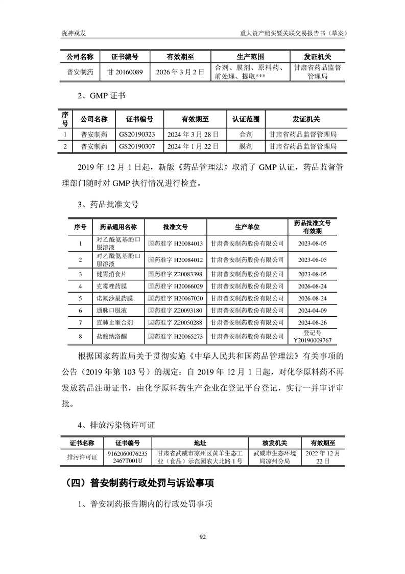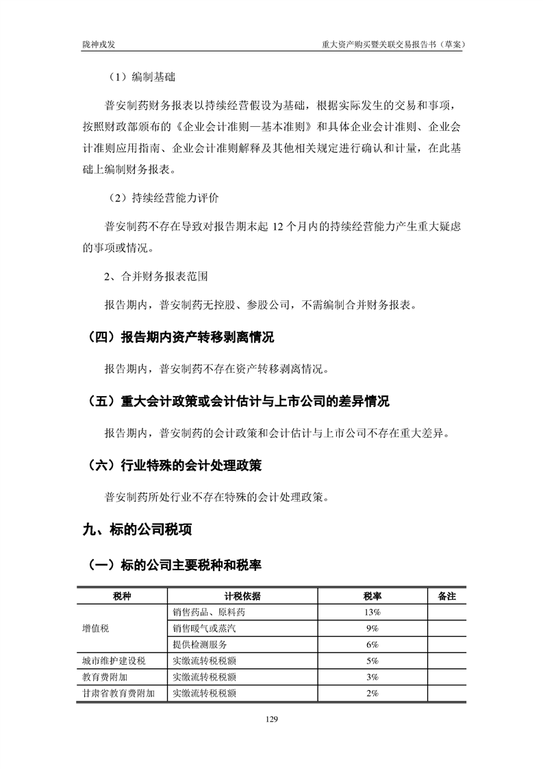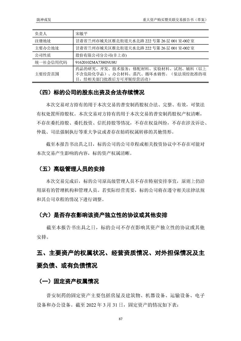 甘肅隴神戎發藥業股份有限公司重大資產購買暨關聯交易報告書(草案)