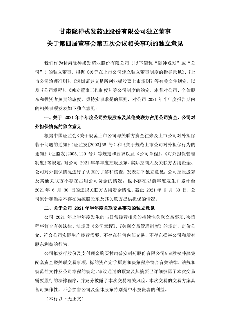 獨立董事關于第四屆董事會第五次會議相關事項的獨立意見