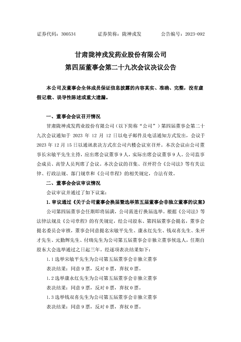 第四屆董事會第二十九次會議決議公告