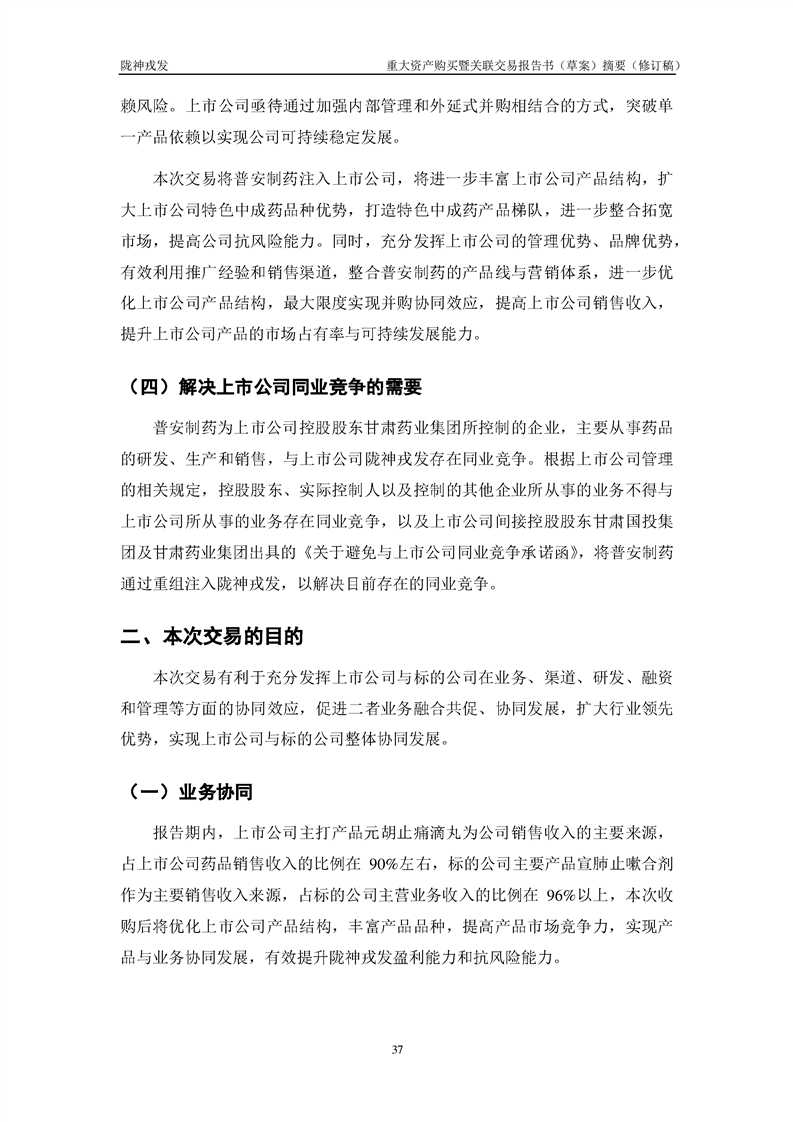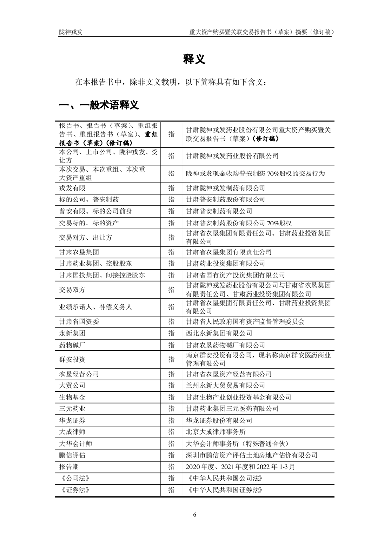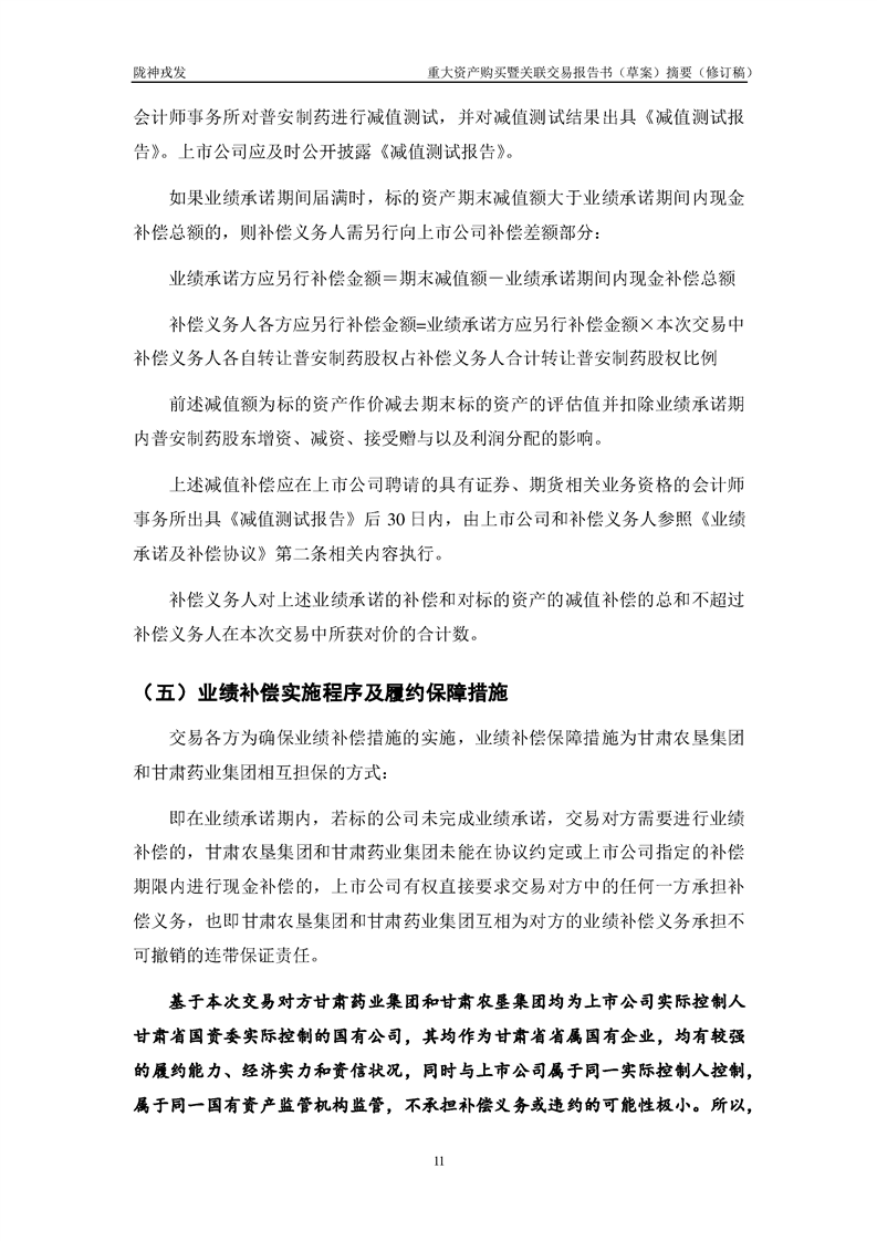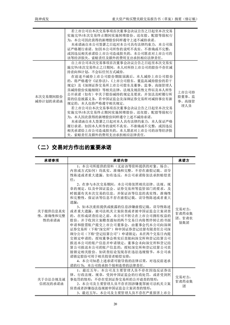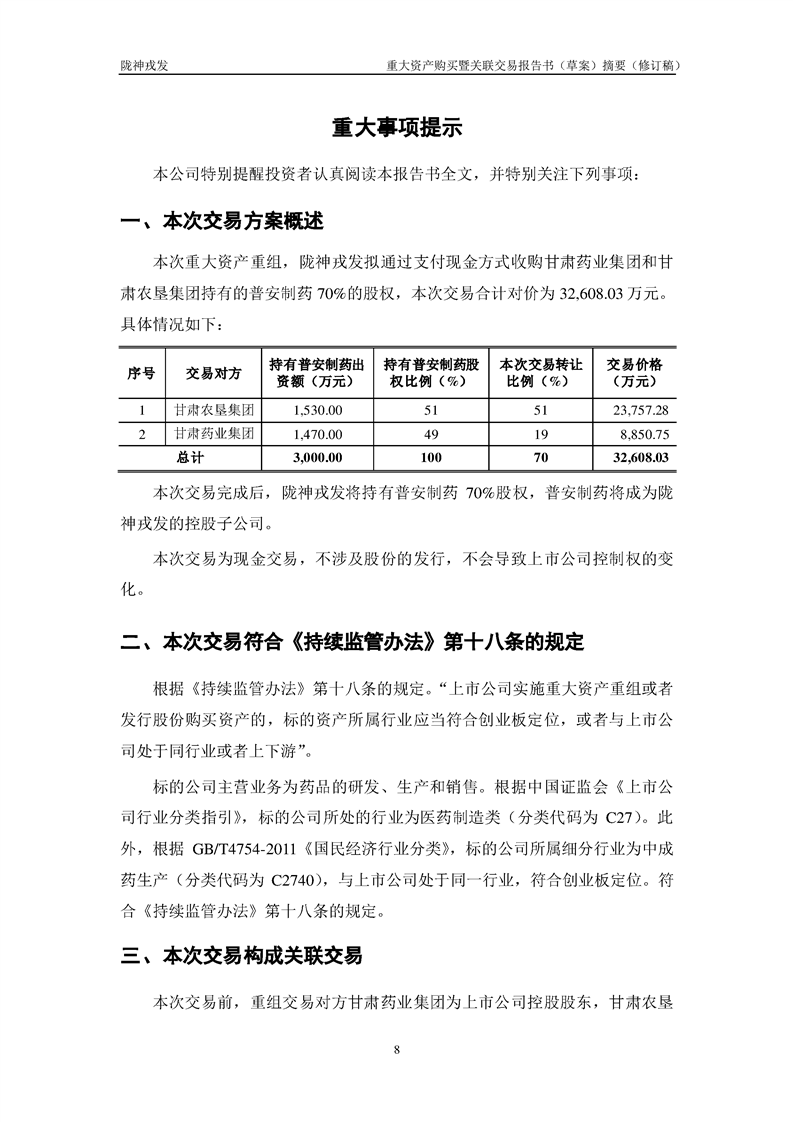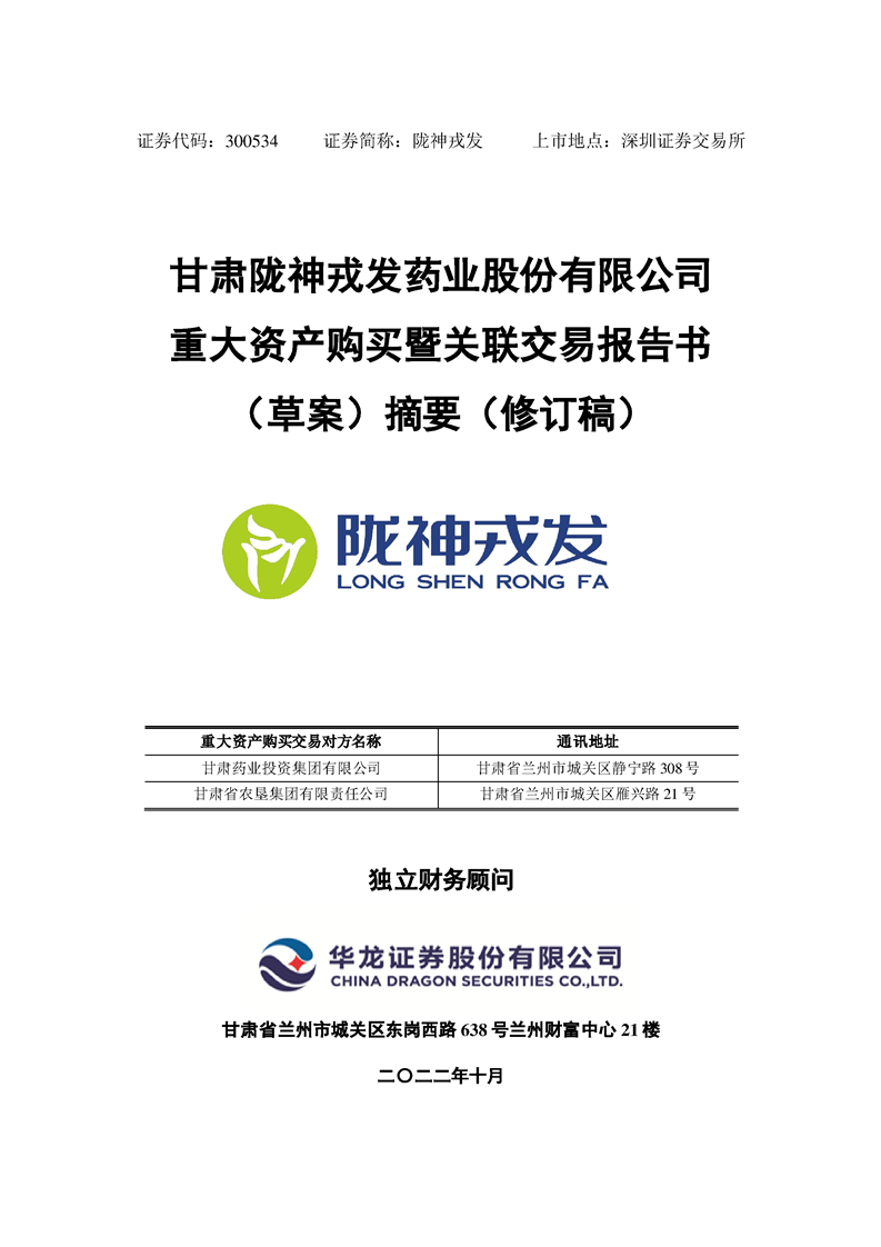 甘肅隴神戎發藥業股份有限公司重大資產購買暨關聯交易報告書(草案)摘要(修訂稿)