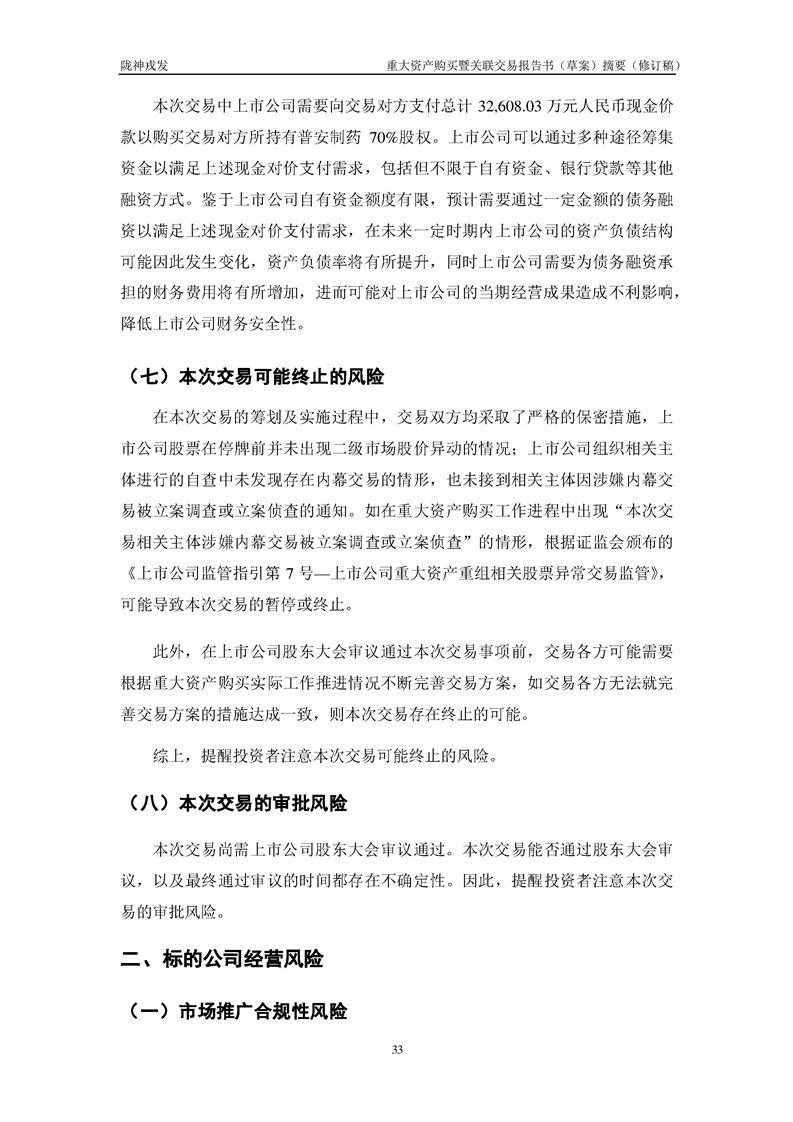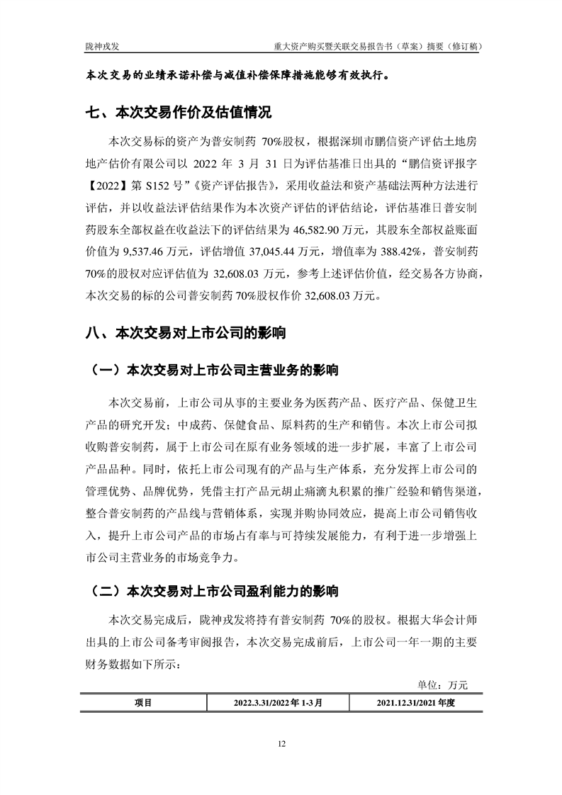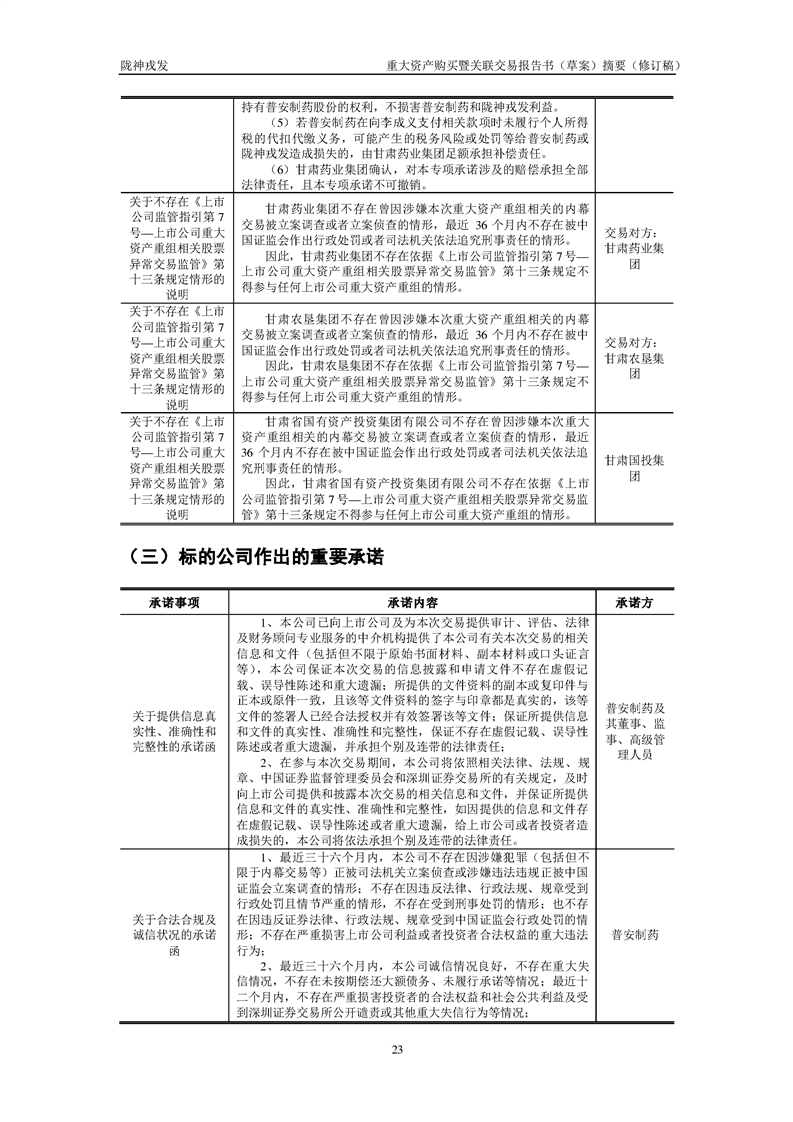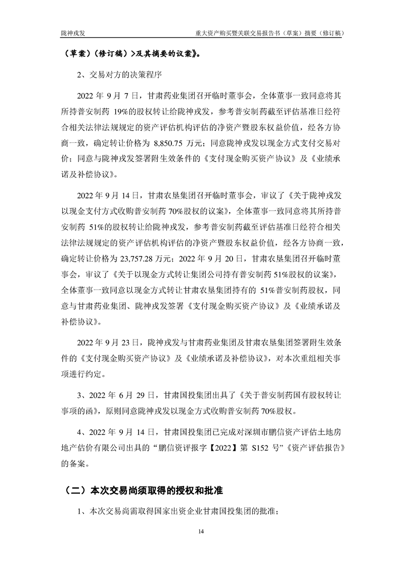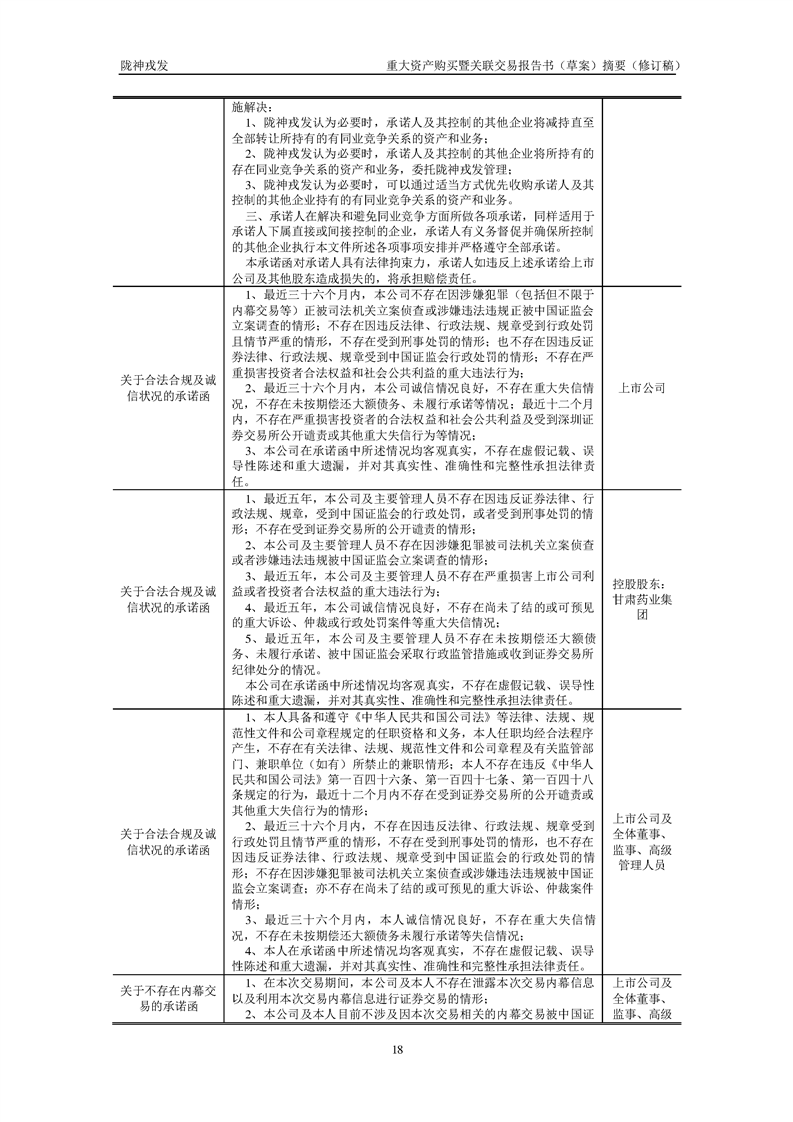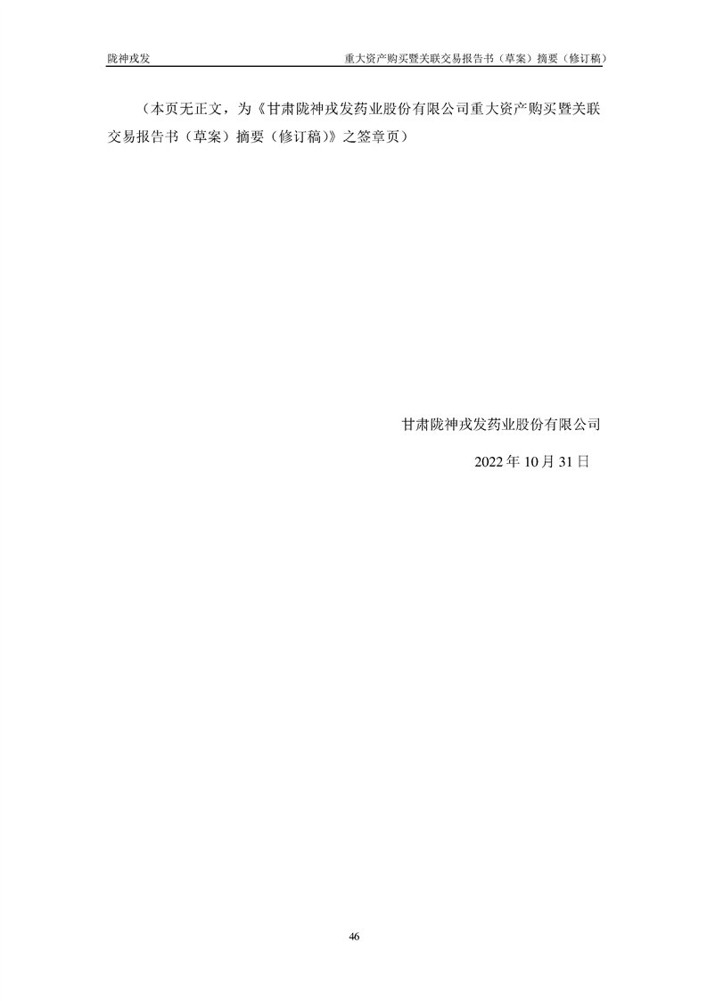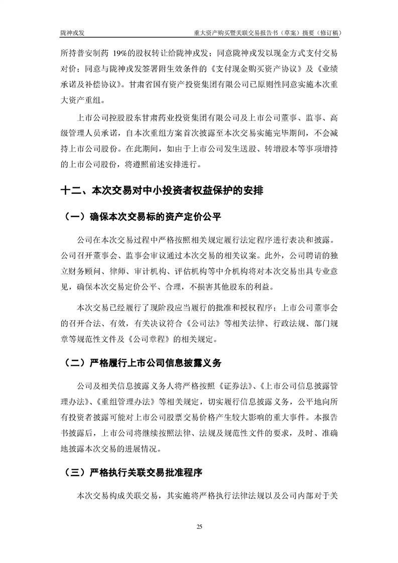 甘肅隴神戎發藥業股份有限公司重大資產購買暨關聯交易報告書(草案)摘要(修訂稿)