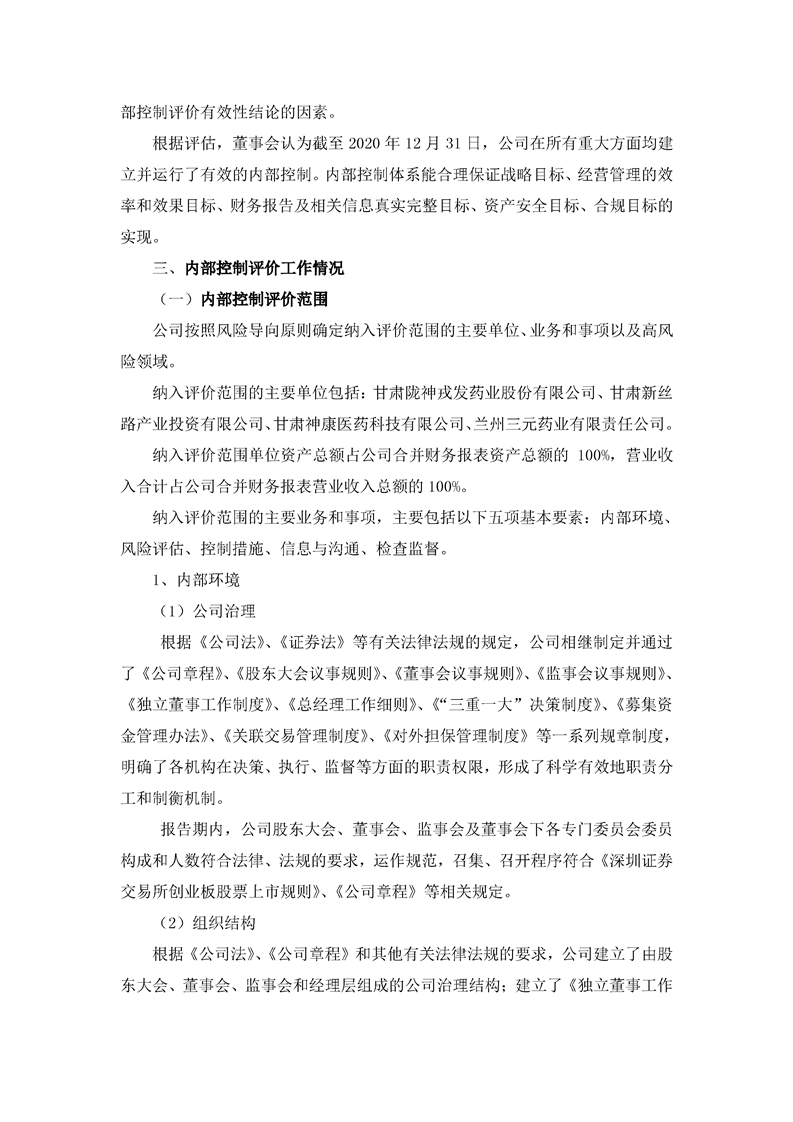 2020年度內(nèi)部控制評價報告