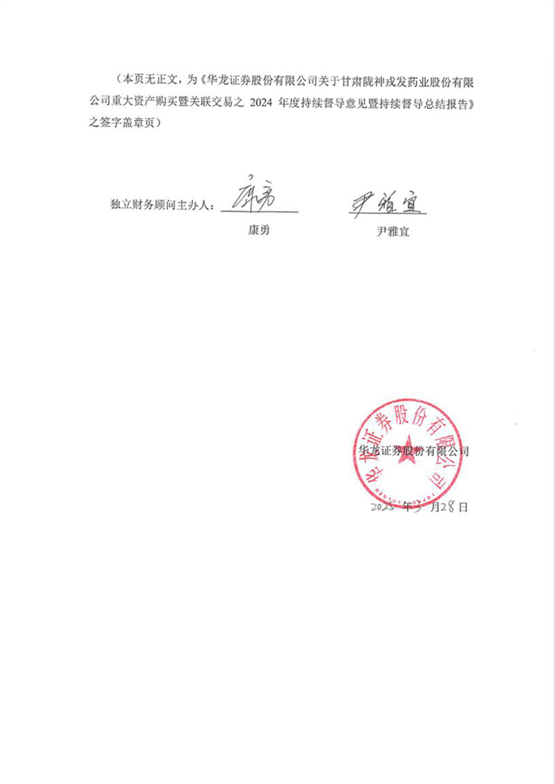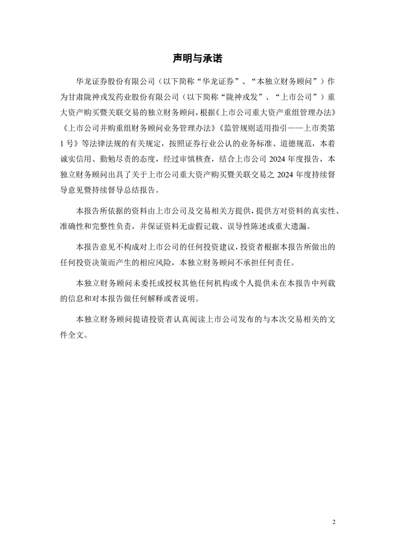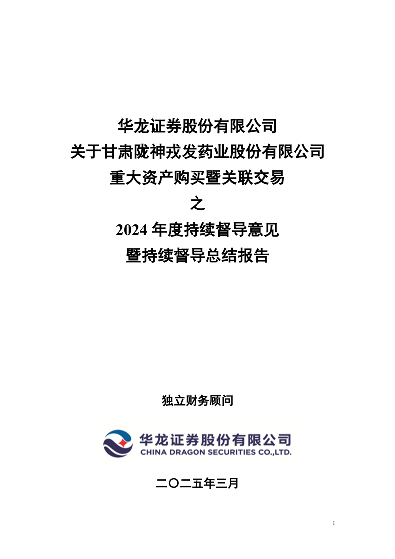 華龍證券股份有限公司關(guān)于甘肅隴神戎發(fā)藥業(yè)股份有限公司重大資產(chǎn)購買暨關(guān)聯(lián)交易之2024年度持續(xù)督導(dǎo)意見暨持續(xù)督導(dǎo)總結(jié)報(bào)告