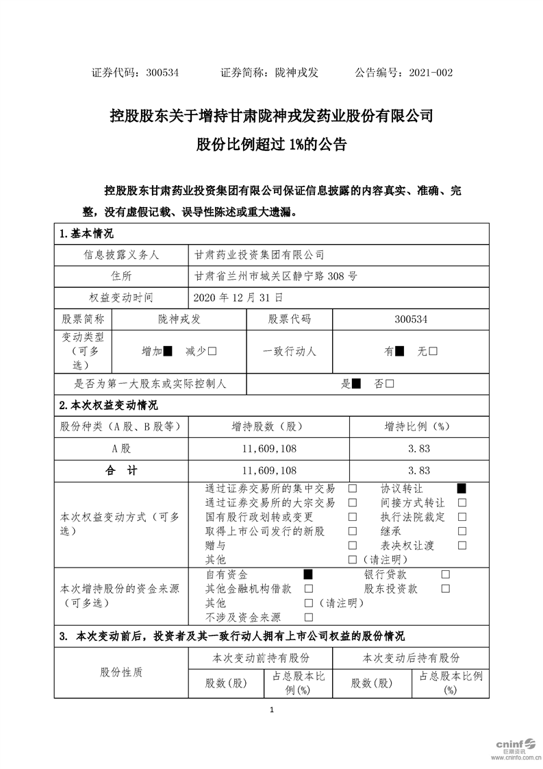 控股股東關(guān)于增持公司股份比例超過(guò)1%的公告