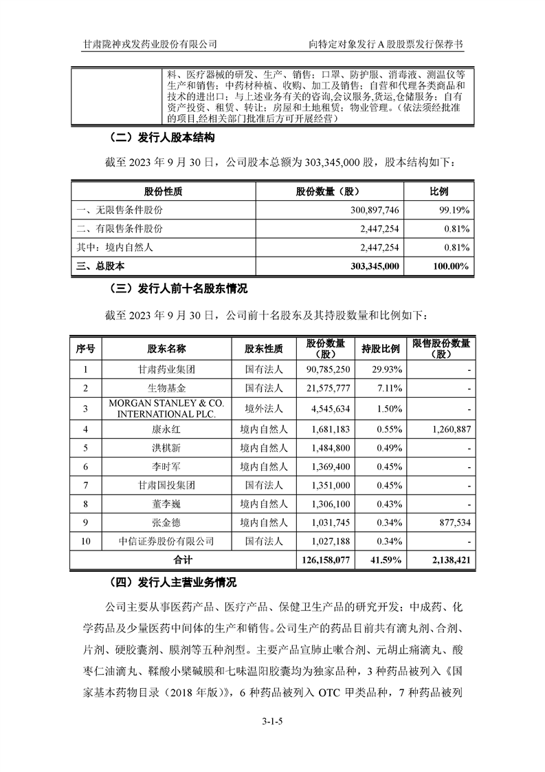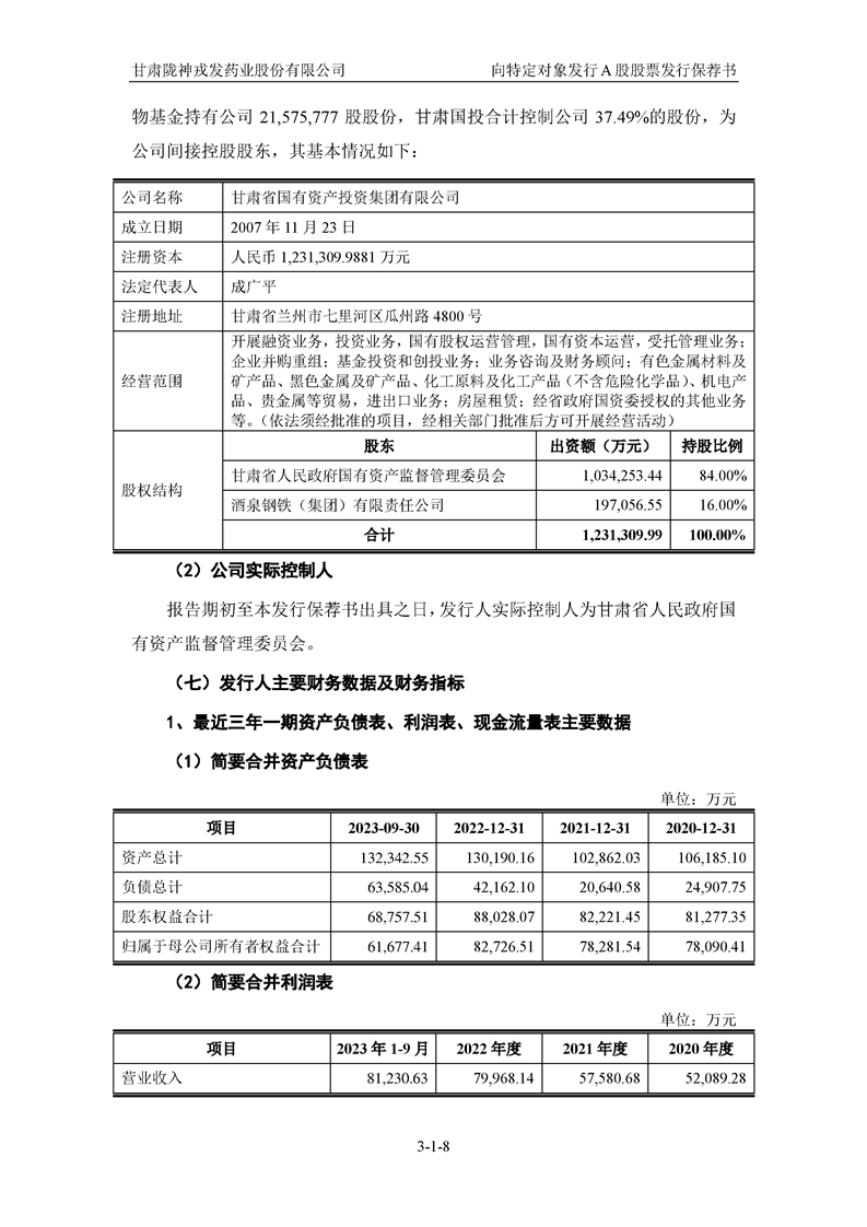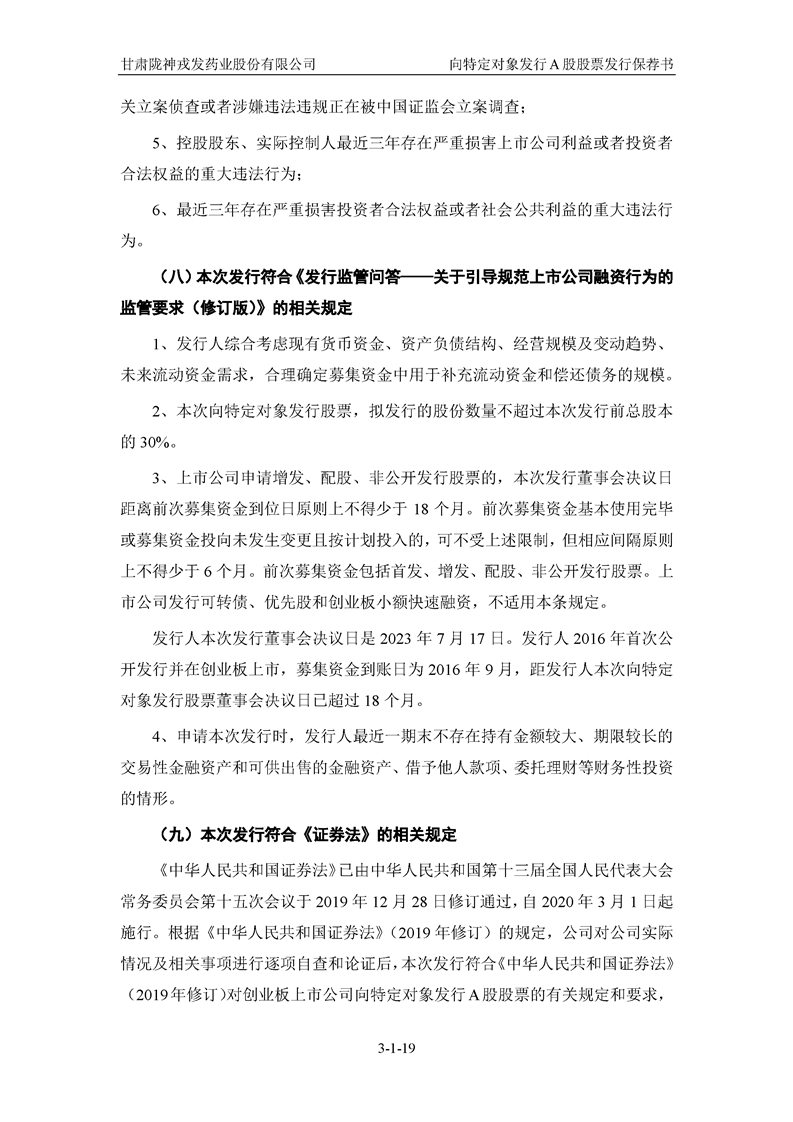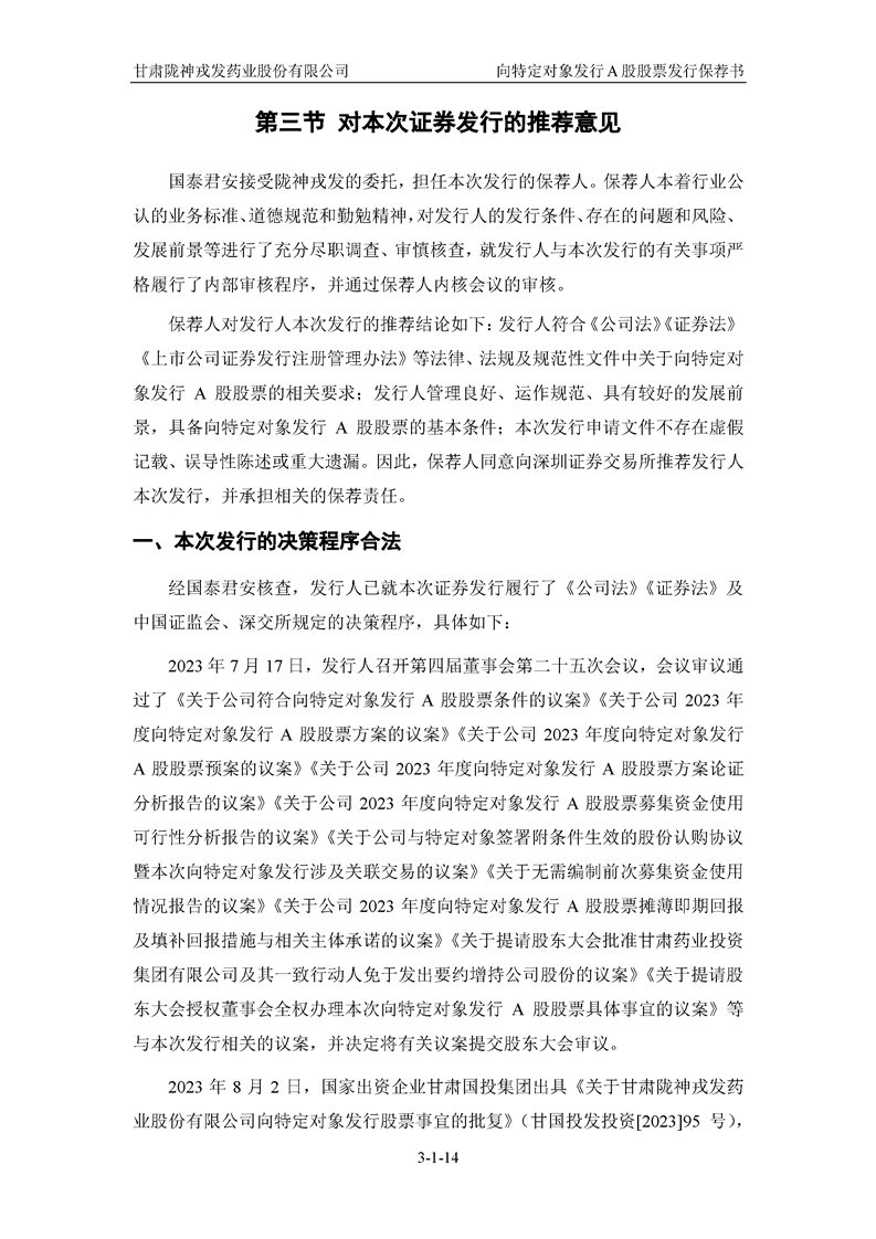 國泰君安證券股份有限公司關于甘肅隴神戎發藥業股份有限公司向特定對象發行A股股票之發行保薦書