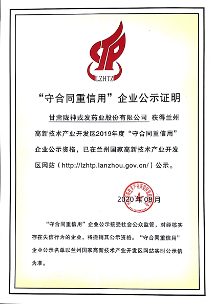 9月29日,蘭州國家高新技術開業區“信用體系建設培訓及‘守合同重信用’企業授牌儀式”在高新區科技孵化大廈隆重舉行。隴神戎發獲評“2019年度‘守合同重信用’企業”,并在高新區官方網站進行信用企業實時公示。