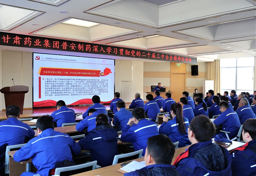 為深入學習宣傳貫徹黨的二十屆三中全會精神,全面理解深化改革的重大意義,進一步提升廣大黨員干部職工政治素養和履職能力,甘肅普安制藥有限公司于12月3日至4日舉辦了黨的二十屆三中全會精神專題培訓班,公司全體管理人員、黨員(含預備黨員)、發展對象、積極分子等120余人參加了此次培訓。