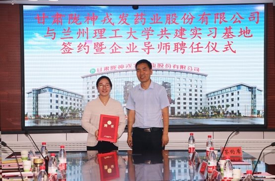 揭牌儀式之后,甘肅隴神戎發藥業股份有限公司與蘭州理工大學生命科學與工程學院實習基地現場簽約,蘭州理工大學生命科學與工程學院任海偉介紹了學院的情況和合作計劃,宣讀導師聘任文件,并頒發了企業導師聘書。