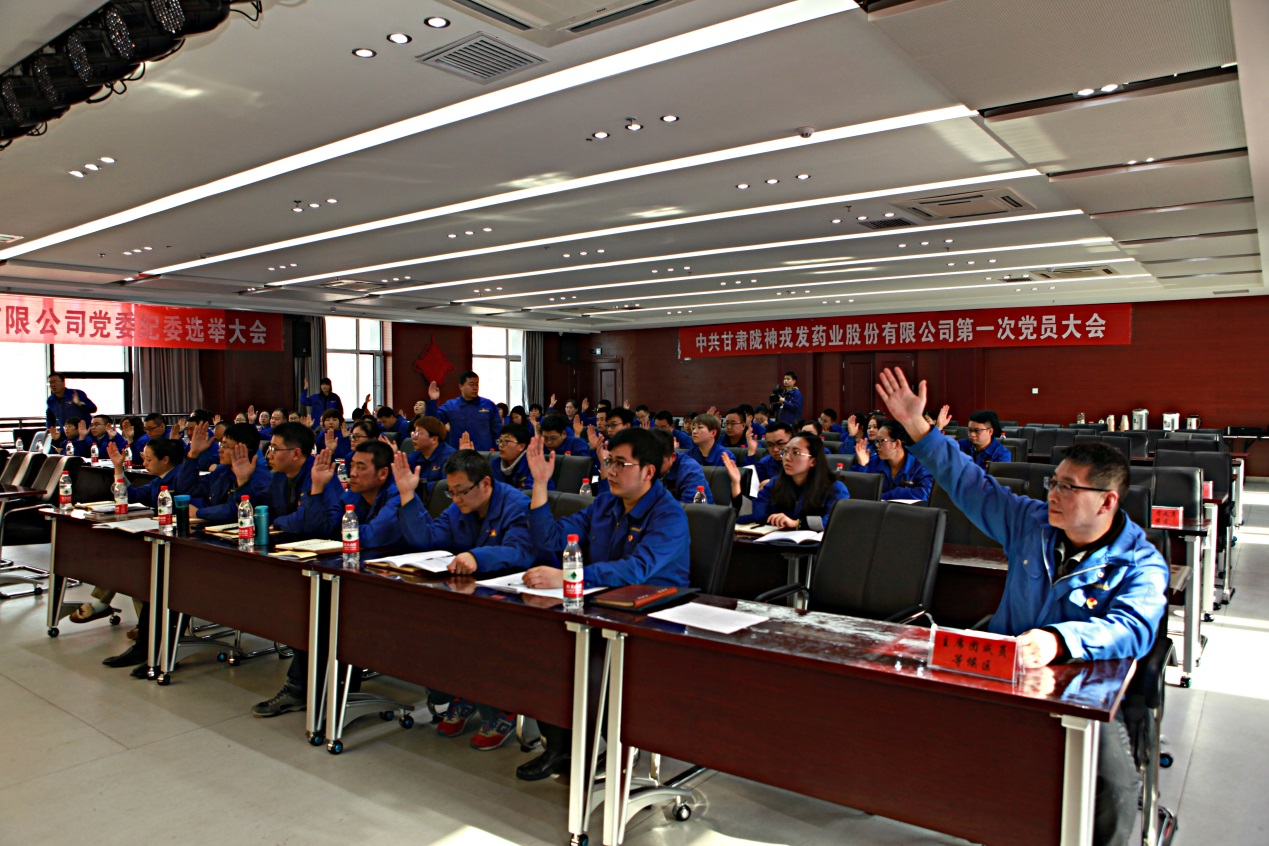 2019年3月14日,甘肅隴神戎發(fā)藥業(yè)股份有限公司第一次黨員大會(huì)暨黨委、紀(jì)委選舉大會(huì)圓滿完成各項(xiàng)議程勝利閉幕。公司全體黨員和特邀人員共90余人參加大會(huì)。此次大會(huì)邀請(qǐng)西北永新集團(tuán)黨委書(shū)記、董事長(zhǎng)康海軍,黨委副書(shū)記、紀(jì)委書(shū)記成炳彥,黨委組織部部長(zhǎng)、人力資源部部長(zhǎng)王宏武,黨委宣傳部部長(zhǎng)、黨委辦公室副主任李生祥等領(lǐng)導(dǎo)蒞臨會(huì)議現(xiàn)場(chǎng)指導(dǎo)。