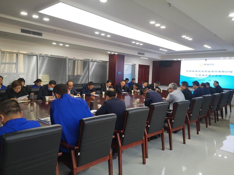 10月8日下午,隴神戎發召開第三季度經營工作分析會,甘肅藥業集團黨委委員、副總經理胡寧、運營管理部部長李建軍蒞臨會議。甘肅藥業集團黨委委員、副總經理兼隴神戎發董事長康海軍,隴神戎發領導班子成員、各子公司負責人、營銷中心各區域經理及相關部門負責人參加了會議。