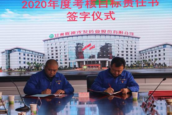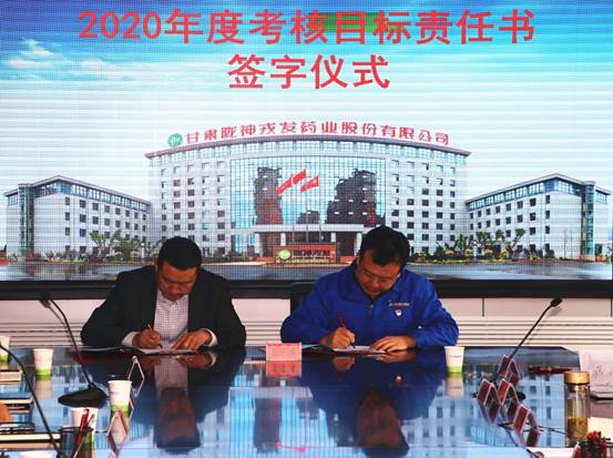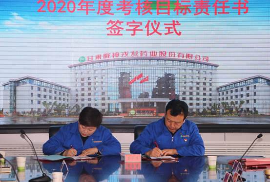 會議中目標責任書的簽訂將此次會議推向了高潮。公司總經理康永紅分別與后勤服務部、甘肅新絲路公司和蘭州三元藥業公司負責人簽訂了2020年度經營目標責任書。目標責任書的簽訂將全年的工作任務目標落到了實處,向公司業務部門傳導了壓力,進一步營造了“責任到人、獎優罰劣”的良好氛圍,增強了真抓實干的信心。