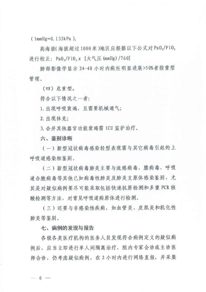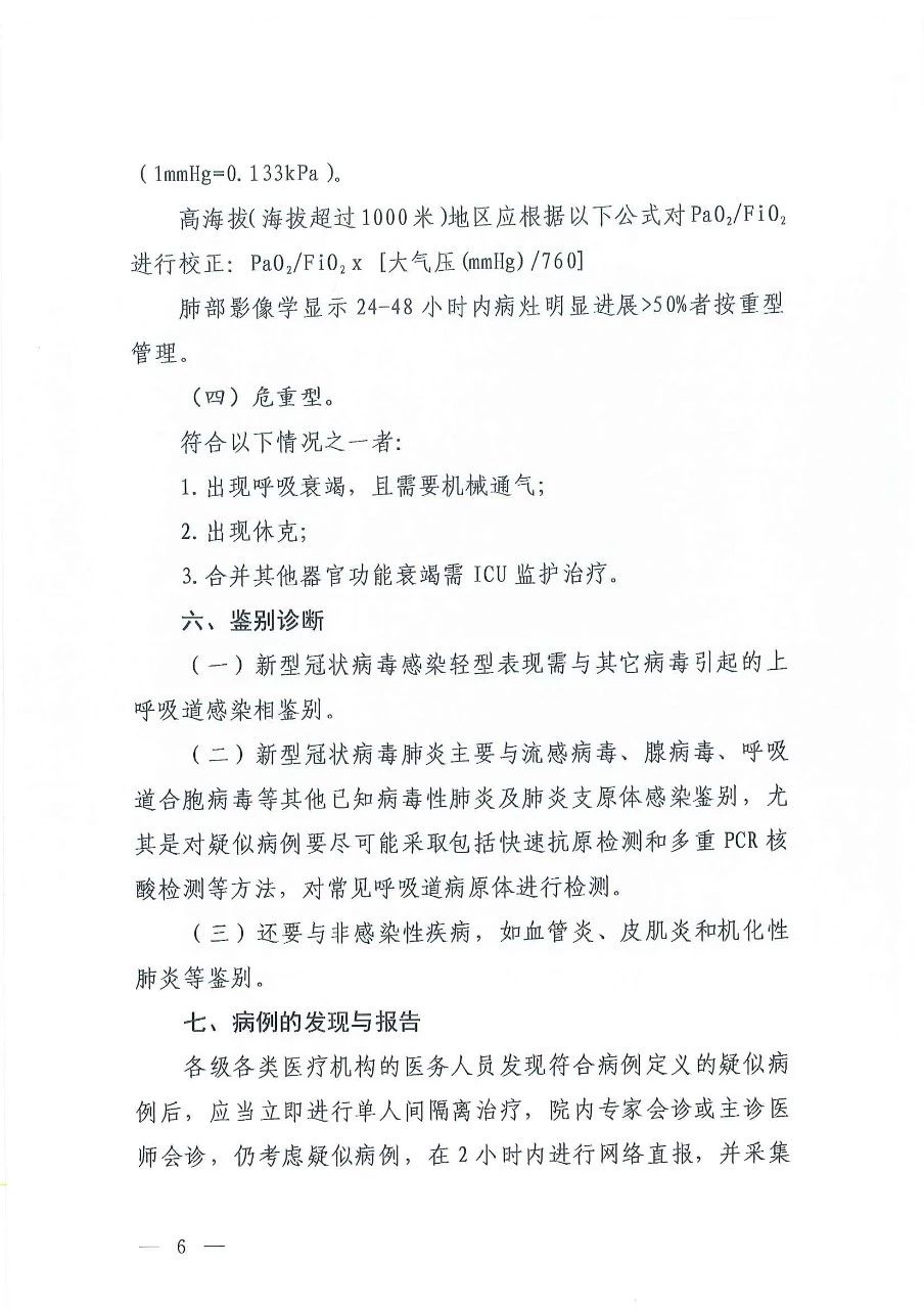 關于印發新型冠狀病毒感染的肺炎診療方案(試行第六版)的通知