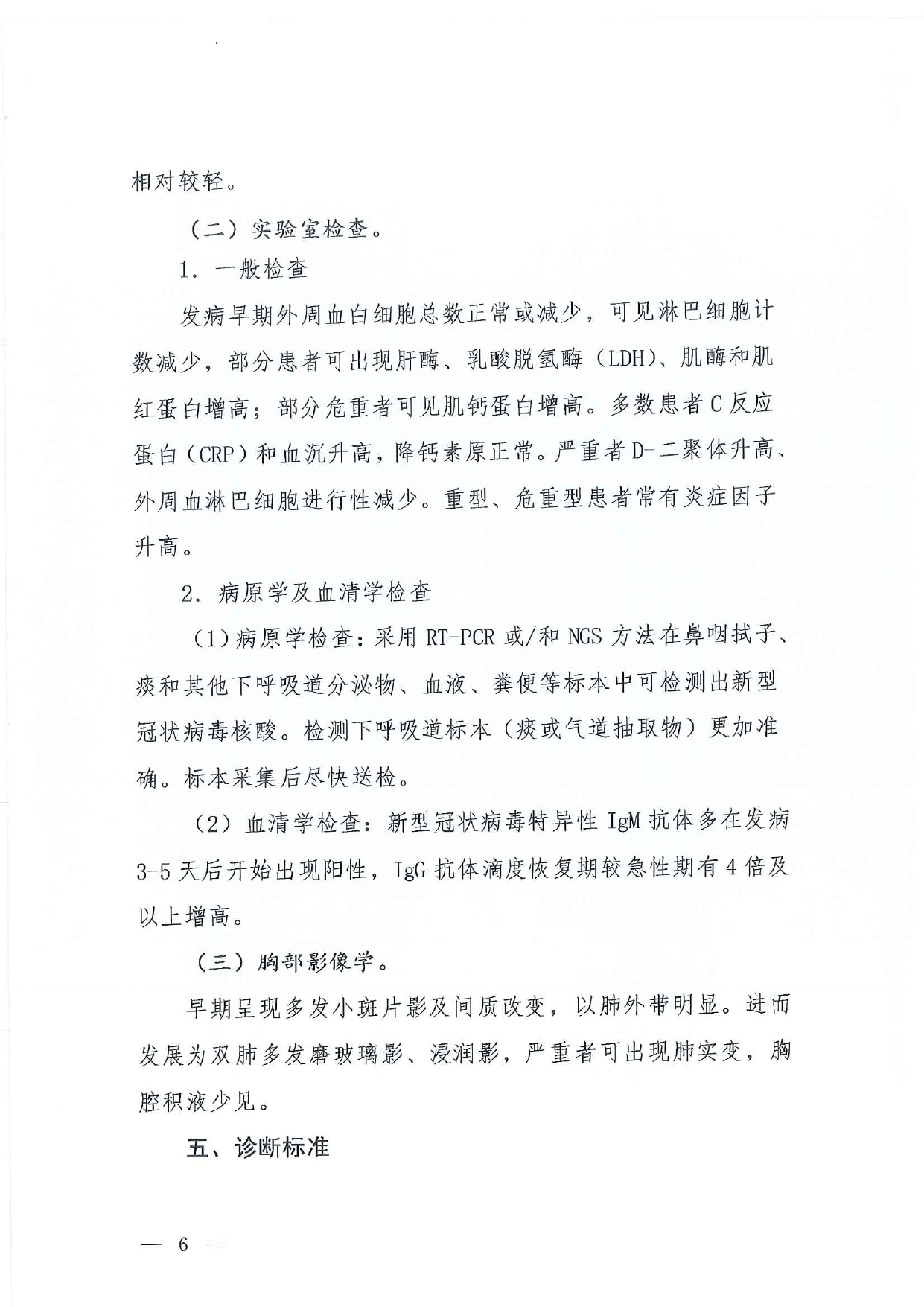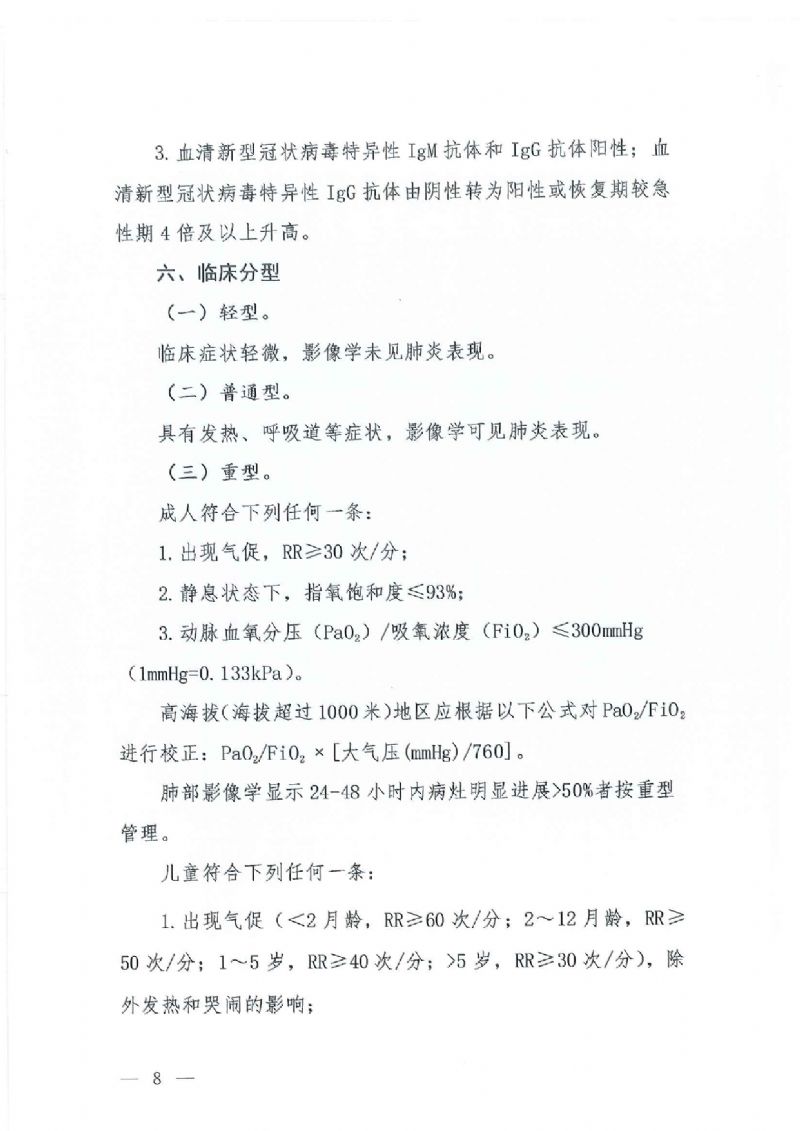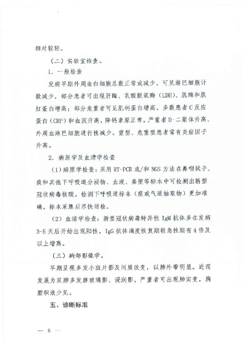 (三)確診病例在原有核酸檢測和測序基礎上增加“血清學檢測”作為依據,即“新型冠狀病毒特異性IgM抗體和IgG陽性”或“新型冠狀病毒特異性IgG抗體由陰性轉為陽性或恢復期較急性期4倍及以上升高”也可確診。