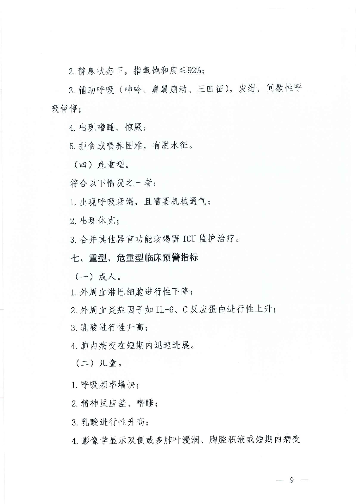 七、按照成人和兒童分別增加“重型、危重型臨床預警指標”