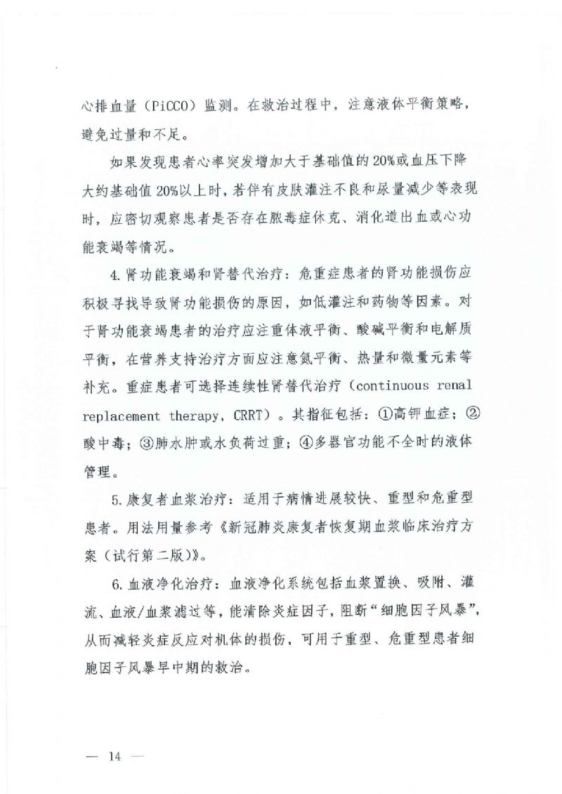 5.對重型、危重型患者存在細胞因子風暴的,為清除炎癥因子,阻斷“細胞因子風暴”,增加“血液凈化治療”。