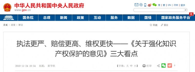 新華社北京11月24日電 題:執(zhí)法更嚴(yán)、賠償更高、維權(quán)更快——《關(guān)于強(qiáng)化知識產(chǎn)權(quán)保護(hù)的意見》三大看點(diǎn)