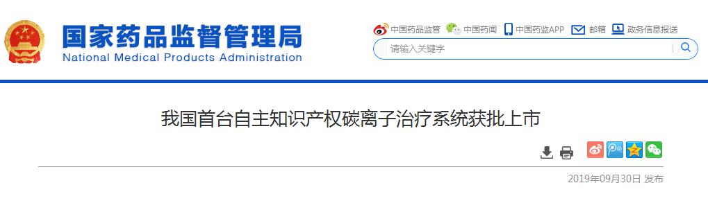 2019年9月29日,國家藥品監督管理局經審查,批準蘭州科近泰基新技術有限責任公司的“碳離子治療系統”醫療器械注冊。 |