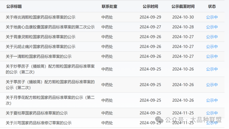09月25日發(fā)布了2個(gè)中藥標(biāo)準(zhǔn)公示,分別為夏枯草和川芎。