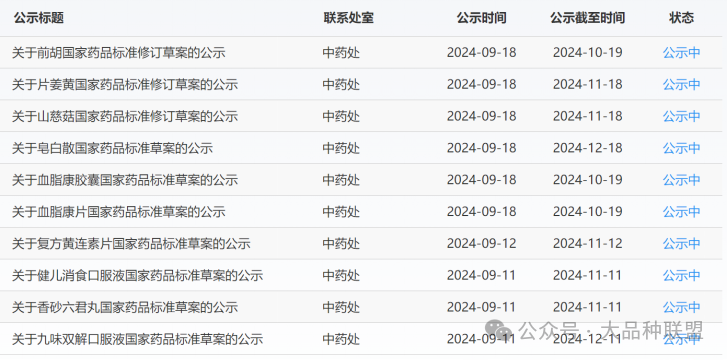 2024年09月11日,國(guó)家藥典委發(fā)布了3個(gè)中藥標(biāo)準(zhǔn)公示,分別為健兒消食口服液公示期2個(gè)月、香砂六君丸公示期2個(gè)月、九味雙解口服液公示期3個(gè)月。