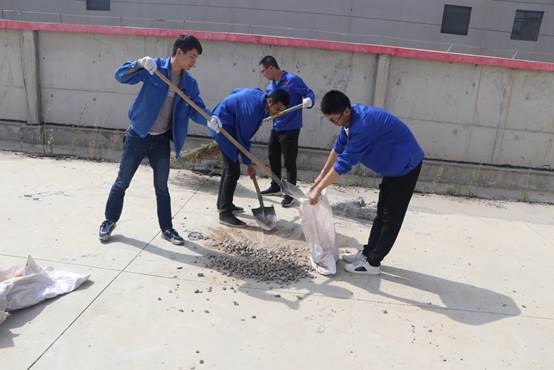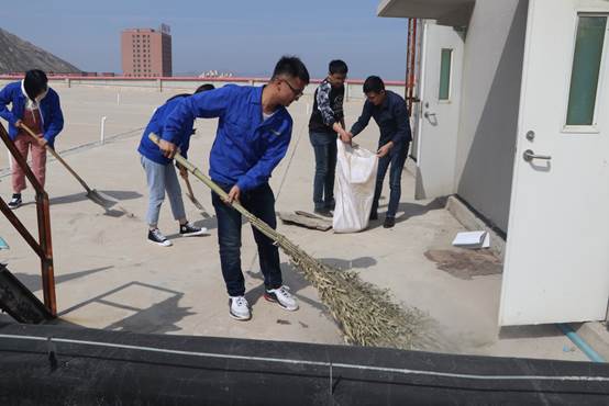 廠區樓頂的泥土、石子、塑料等下雨天被雨水沖刷后,容易堵塞樓頂排水口,存在安全隱患。所以此次清理活動,主要針對樓頂環境衛生、衛生死角進行了集中清理。活動開始后團總支將已準備好的鐵鍬、簸箕、掃帚等工具分發到各小組,所有人登上樓頂,發揮不怕苦、臟、累的精神,積極地清理石子、泥土、雜物等垃圾。利用廢棄的編織袋來裝運,即節省了物資,又能二次利用。