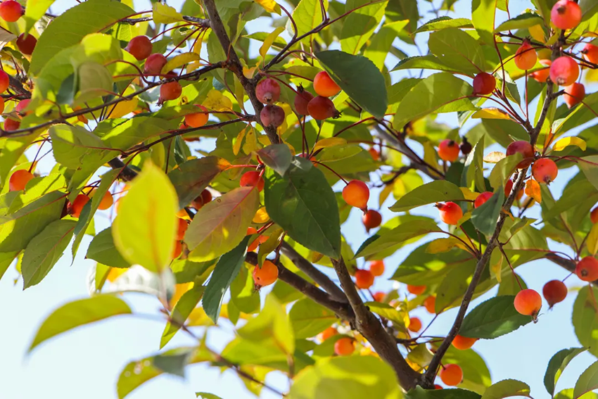 廠區角落,金黃的銀杏果綴滿枝頭,紅海棠與黃海棠交錯生長,果實如瑪瑙般綴滿枝椏,為秋日的廠區添一抹活潑的亮色。這些果實不張揚,卻以最本真的姿態,詮釋著“豐收”的另一種模樣——不必碩果累累,只要自然生長,便是對歲月最好的回應。